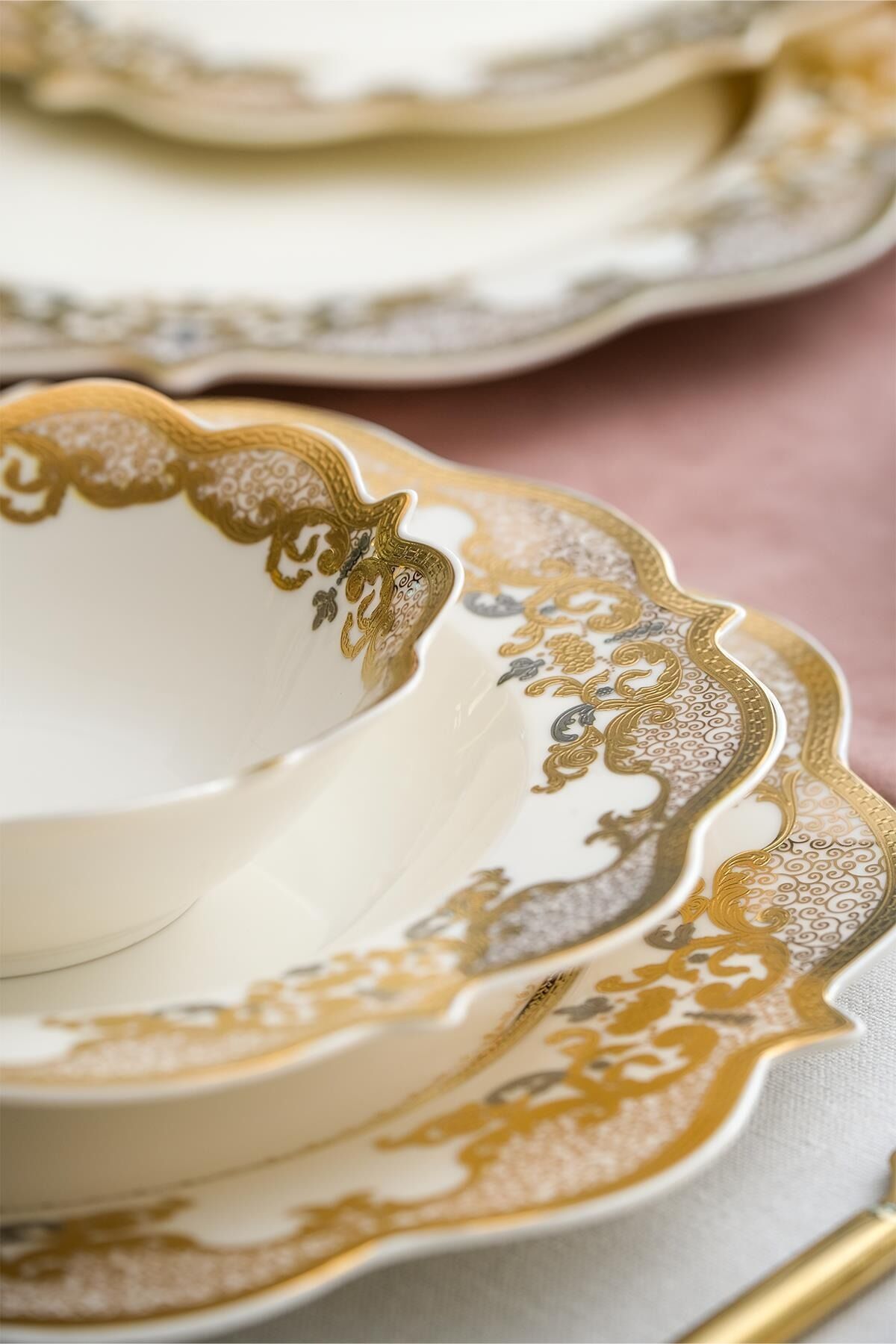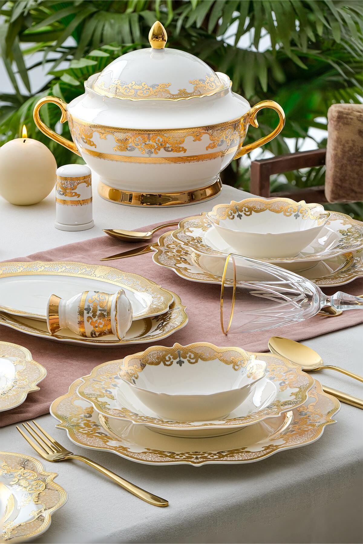 Queen Victoria Beatris 60 Parça 12 Kişilik Gold Porselen Yemek Takımı