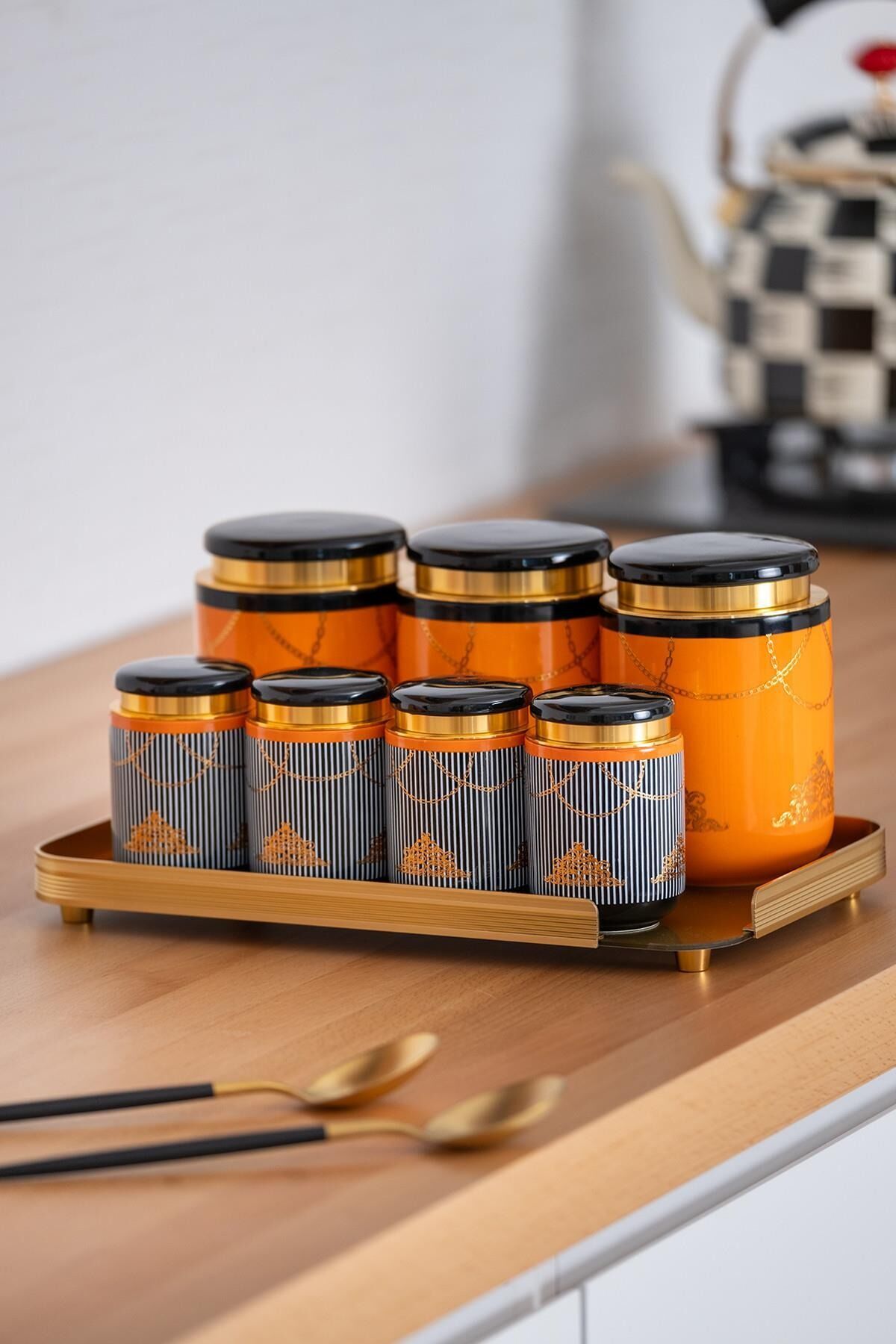 Pansy Posy 8 Parça Cam Tepsili Kavanoz Seti