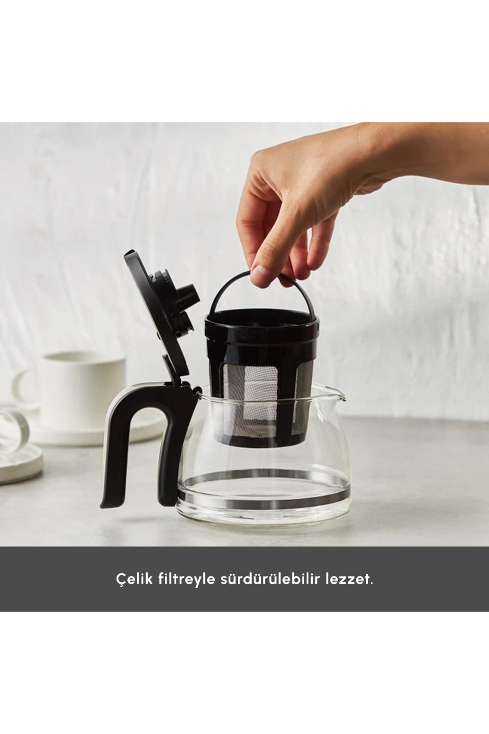 - Cam demliği ve paslanmaz çelik filtresiyle sağlıklı bir kullanım sunarken, çıkarılabilir çay filtresiyle de temizlikte kolaylık sağlar.