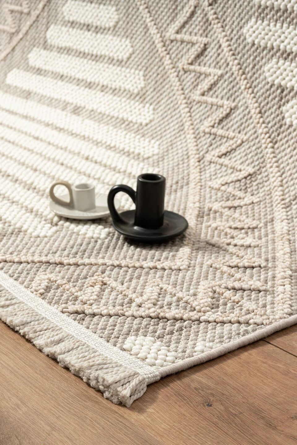 İpliği polyester, taban malzemesi %100 pamuktur. Geometrik deseni ile halı modası evinize gelir. Modern ve İskandinav tarzı mobilyalar ile uyumludur. Oturma odası, yatak odası, antre-hol ve mutfakta kullanıma uygundur. Yerden ısıtmalı alanlarda kullanılabilir. Taban yalıtımına katkı sağlar.