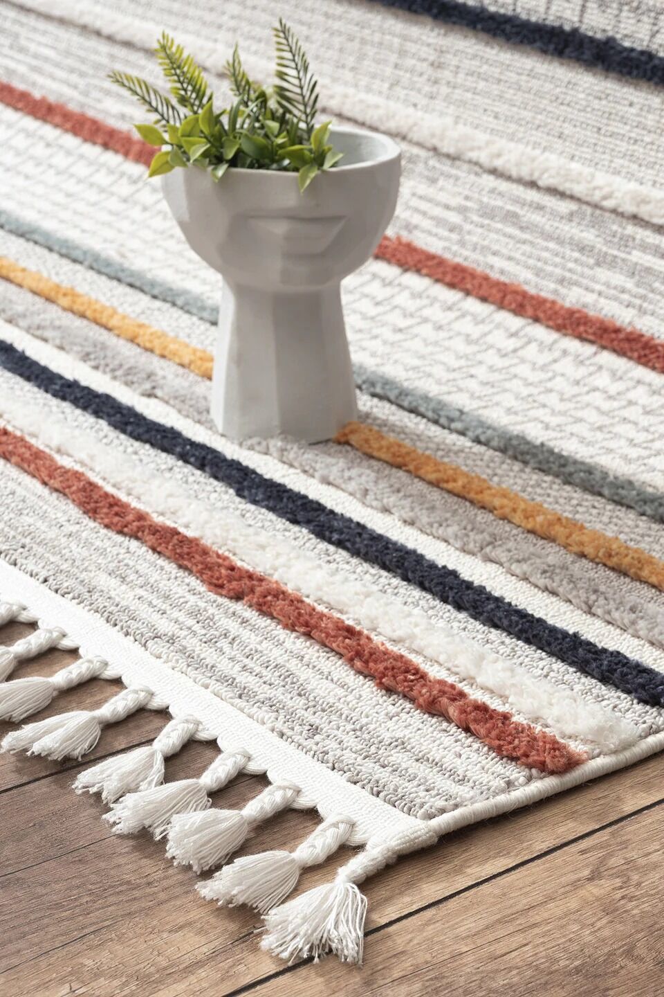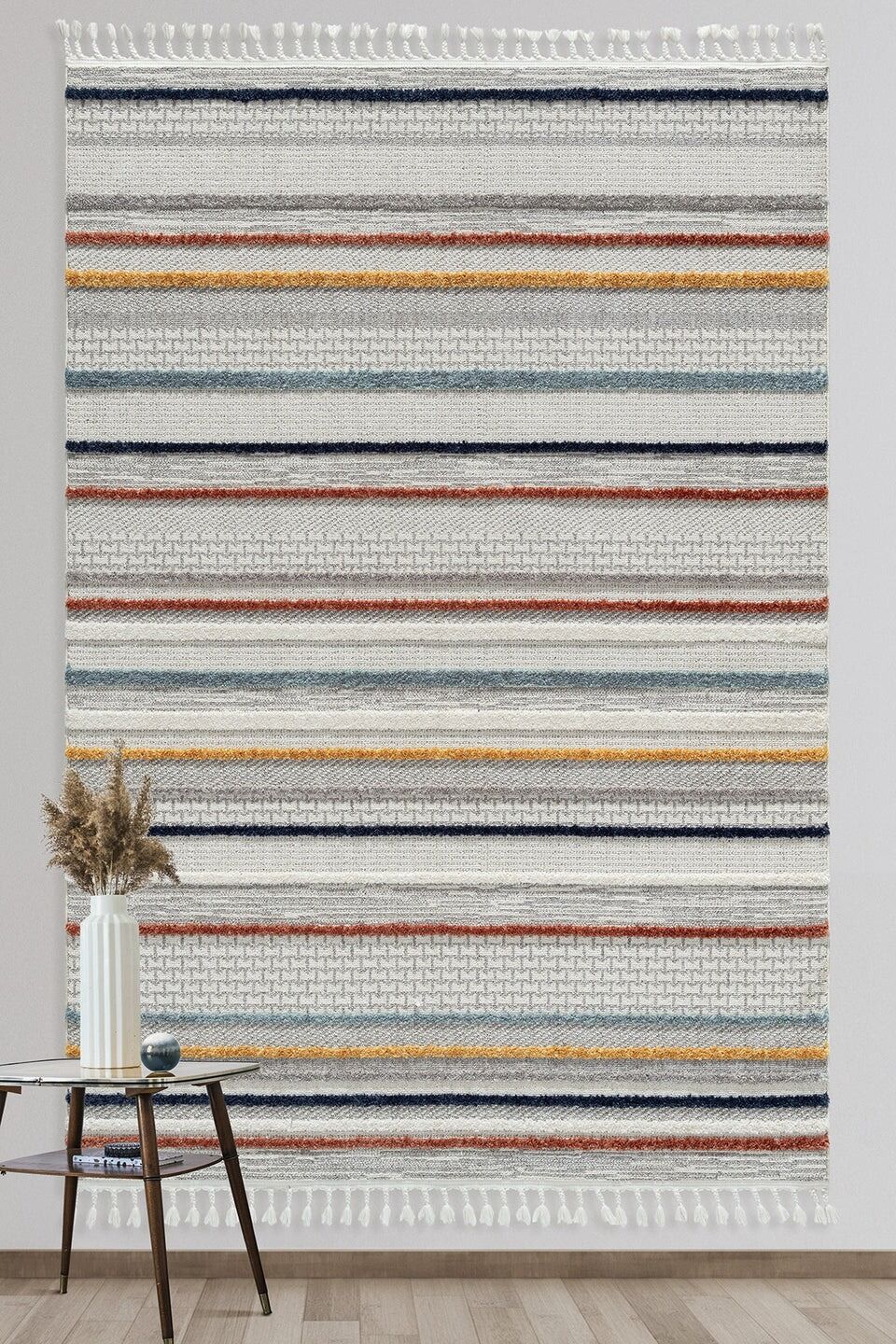 İpliği polyester, taban malzemesi %100 pamuktur. Geometrik deseni ile halı modası evinize gelir. Modern ve İskandinav tarzı mobilyalar ile uyumludur. Oturma odası, yatak odası, çocuk odası, antre-hol ve mutfak kullanımına uygundur. Yerden ısıtmalı alanlarda kullanılabilir. Taban yalıtımına katkı sağlar.