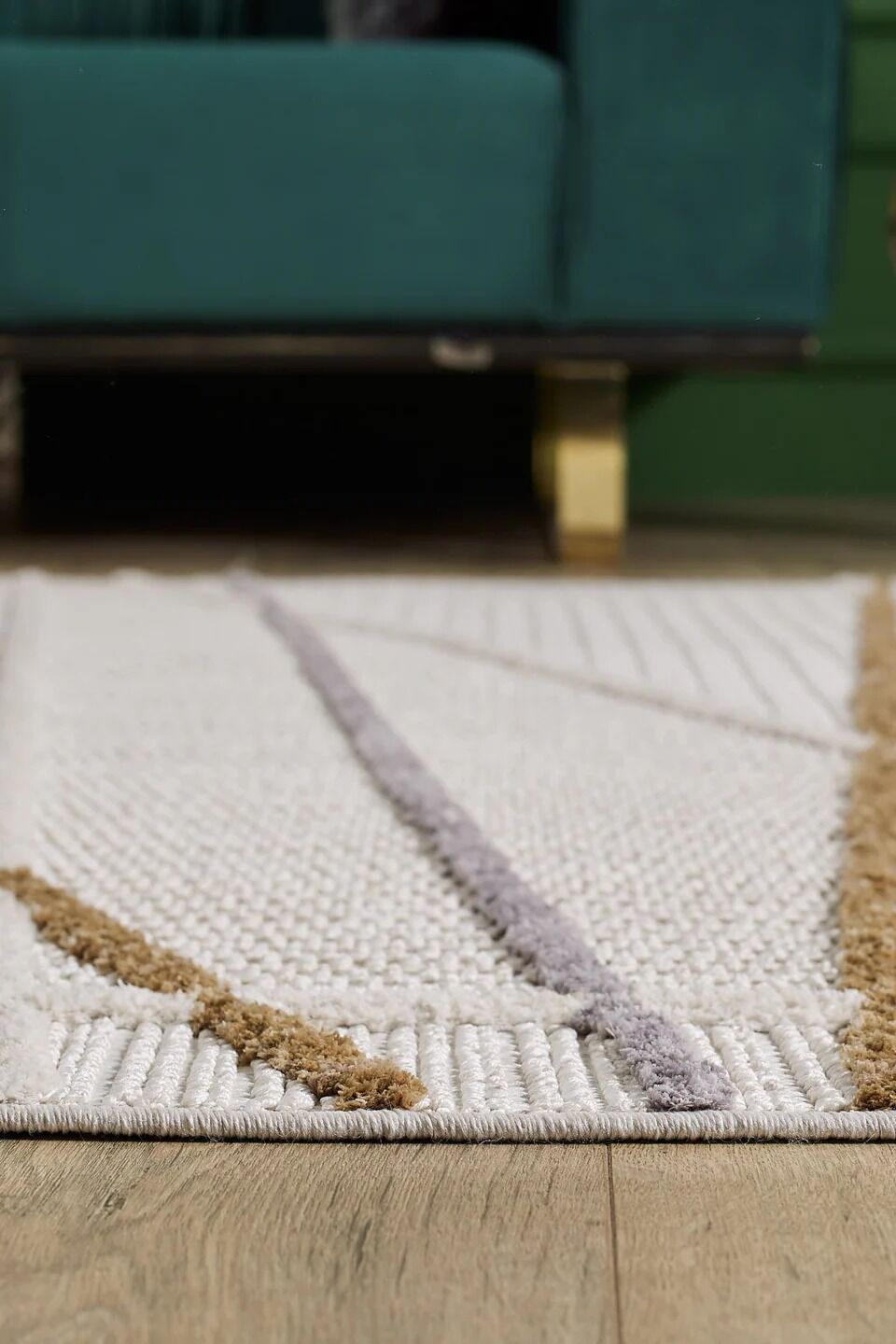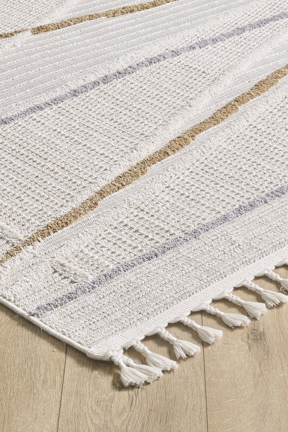 İpliği polyester, taban malzemesi %100 pamuktur. Saçaklı yapıdadır, hav vermez. Geometrik deseni ile halı modası evinize gelir. İskandinav tarzı mobilyalar ile uyumludur. Oturma odası, yatak odası, antre-hol, çocuk odası ve mutfak kullanımına uygundur. Yerden ısıtmalı alanlarda kullanılabilir. Taban yalıtımına katkı sağlar.
