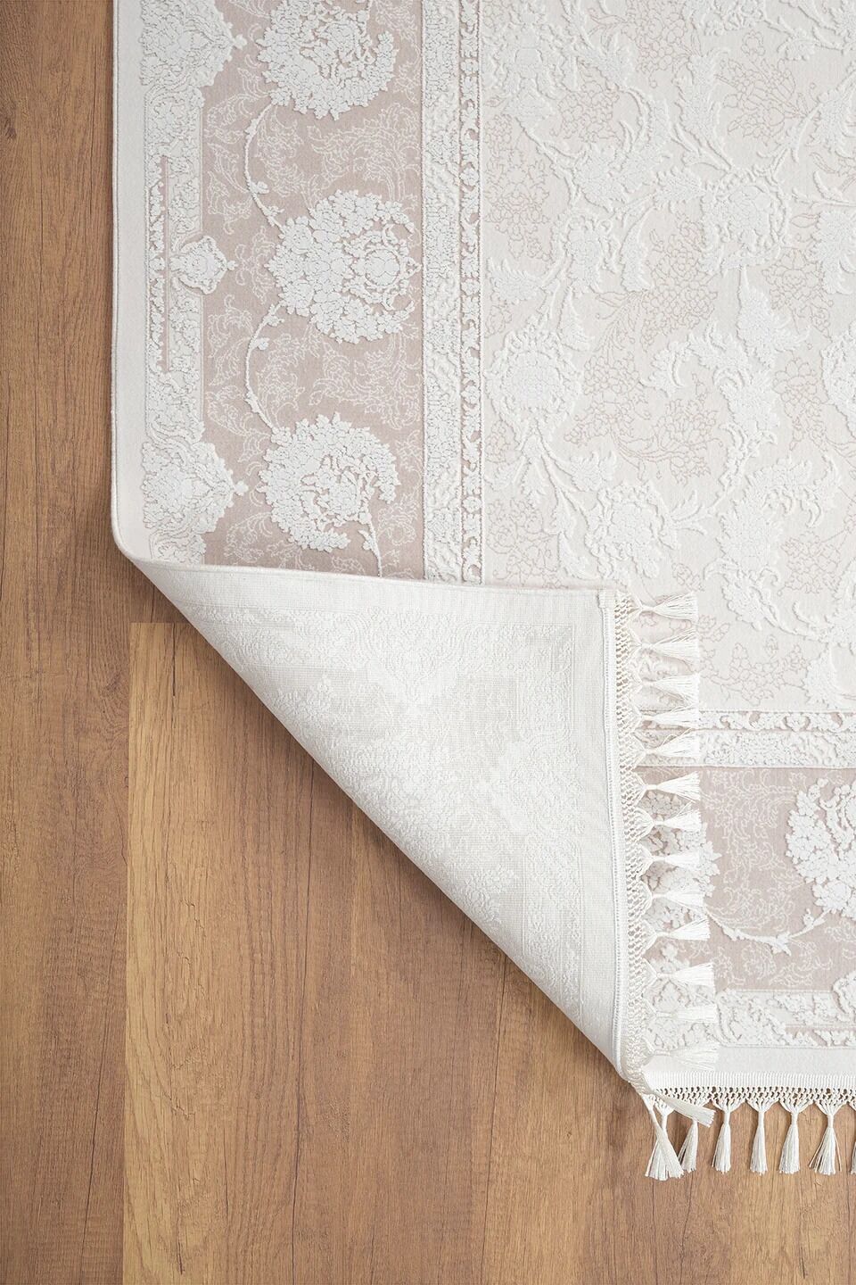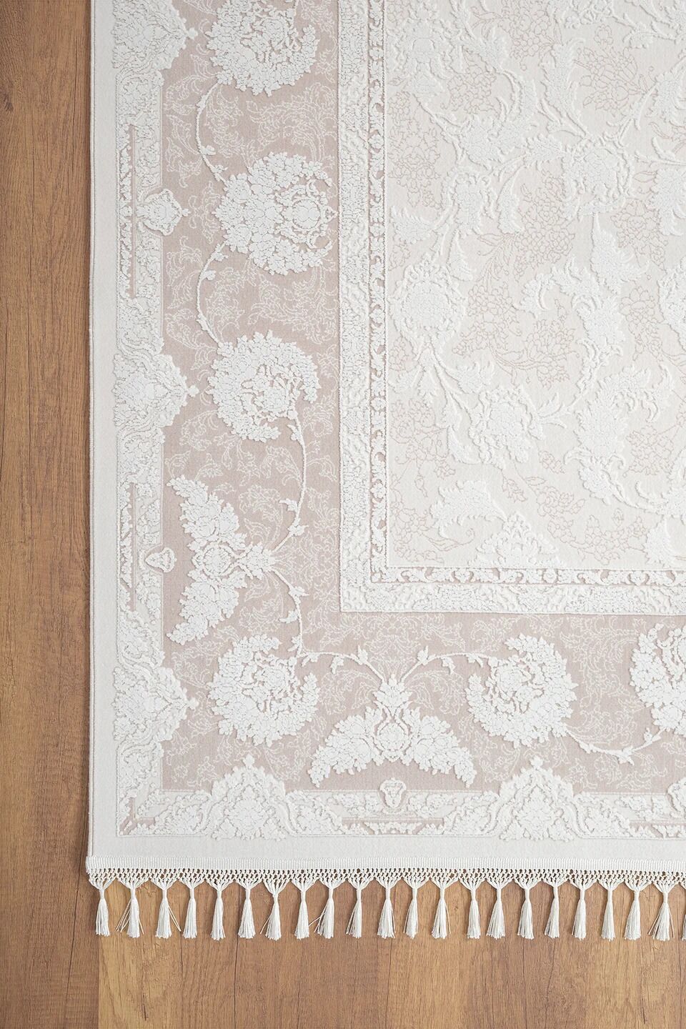 İpliği doğal bir malzeme olan viskon ve akrilik karışımı olup, taban malzemesi %100 pamuktur. Kendinden saçaklıdır. Çerçeveli deseni ile halı modasını evinize getirir. Modern ve klasik mobilyalar ile uyumludur. Oturma odası, yatak odası, antre-hol, salon ve mutfak kullanımına uygundur. Yerden ısıtmalı alanlarda kullanılabilir. Taban yalıtımına katkı sağlar.