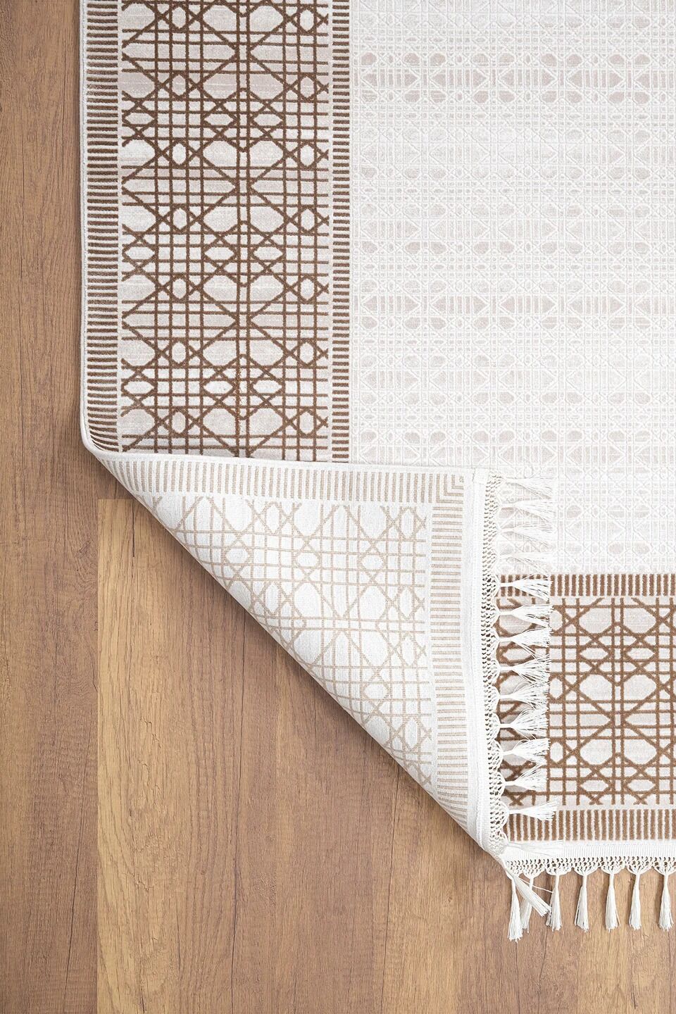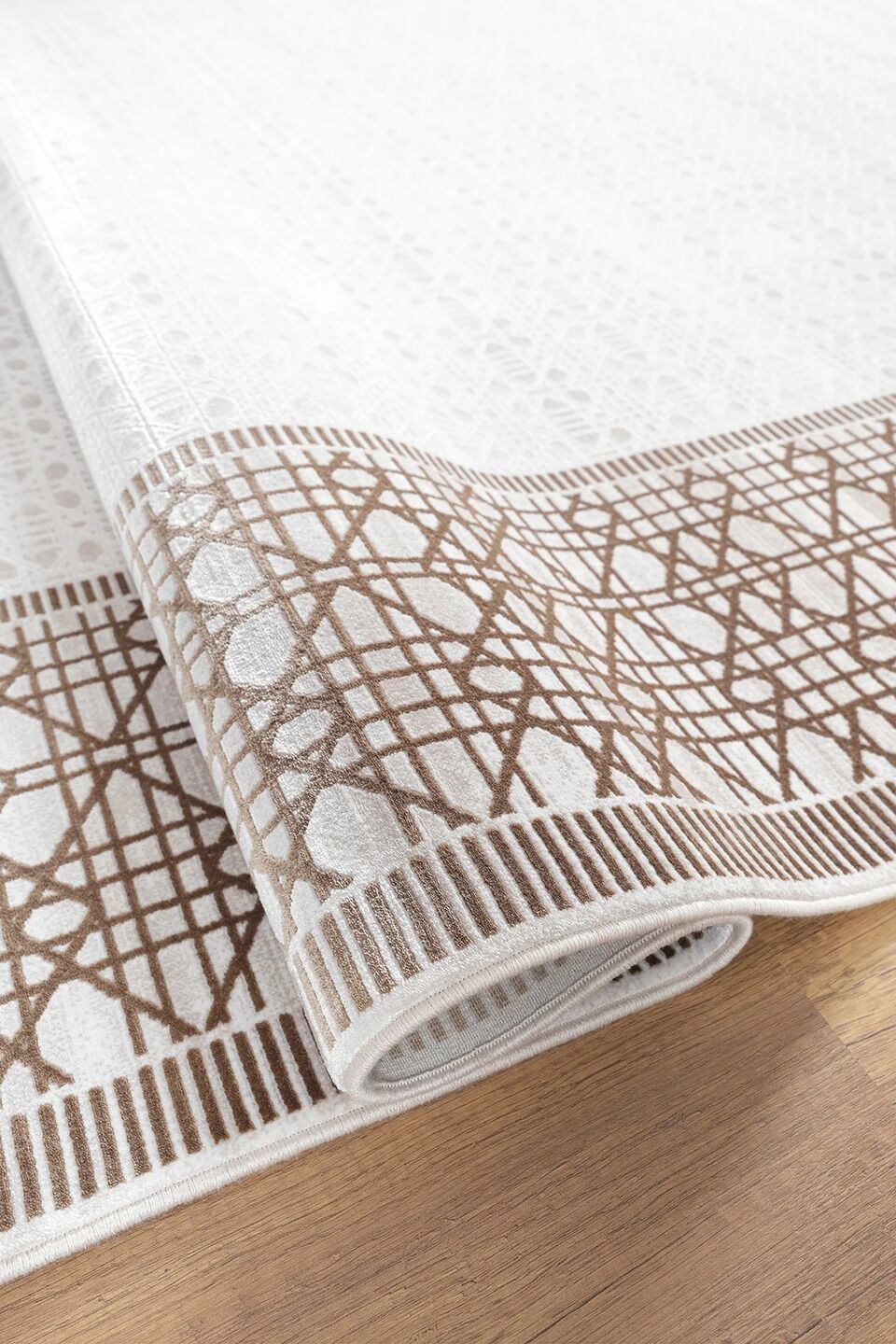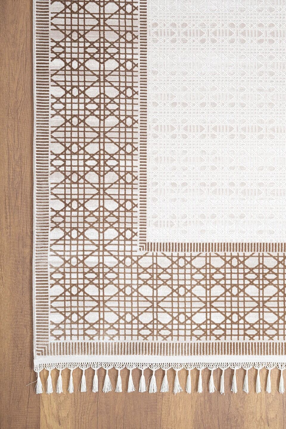 İpliği doğal bir malzeme olan viskon ve akrilik karışımı olup, taban malzemesi %100 pamuktur. Kendinden saçaklıdır. Çerçeveli deseni ile halı modasını evinize getirir. Modern ve klasik mobilyalar ile uyumludur. Oturma odası, yatak odası, antre-hol, salon ve mutfak kullanımına uygundur. Yerden ısıtmalı alanlarda kullanılabilir. Taban yalıtımına katkı sağlar.