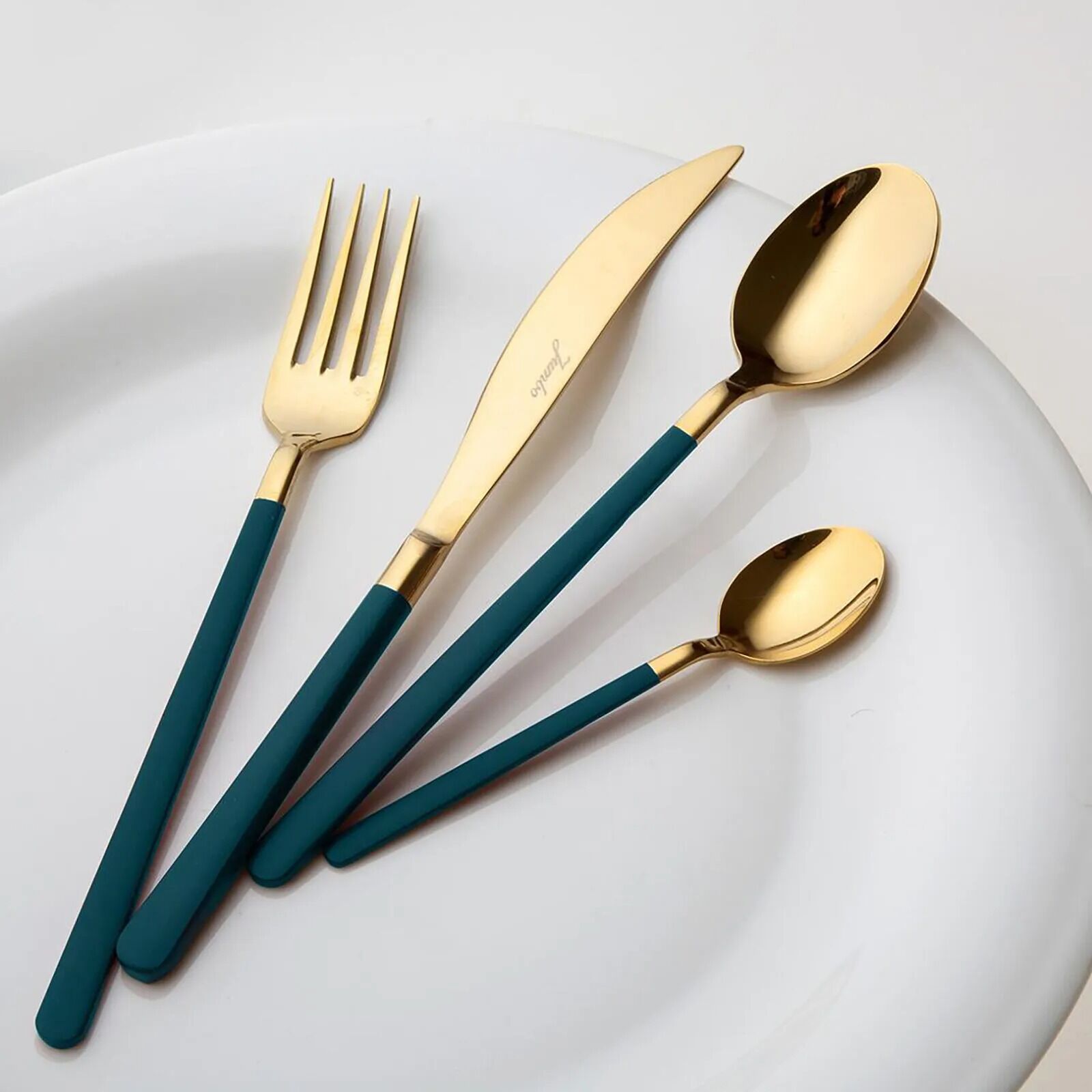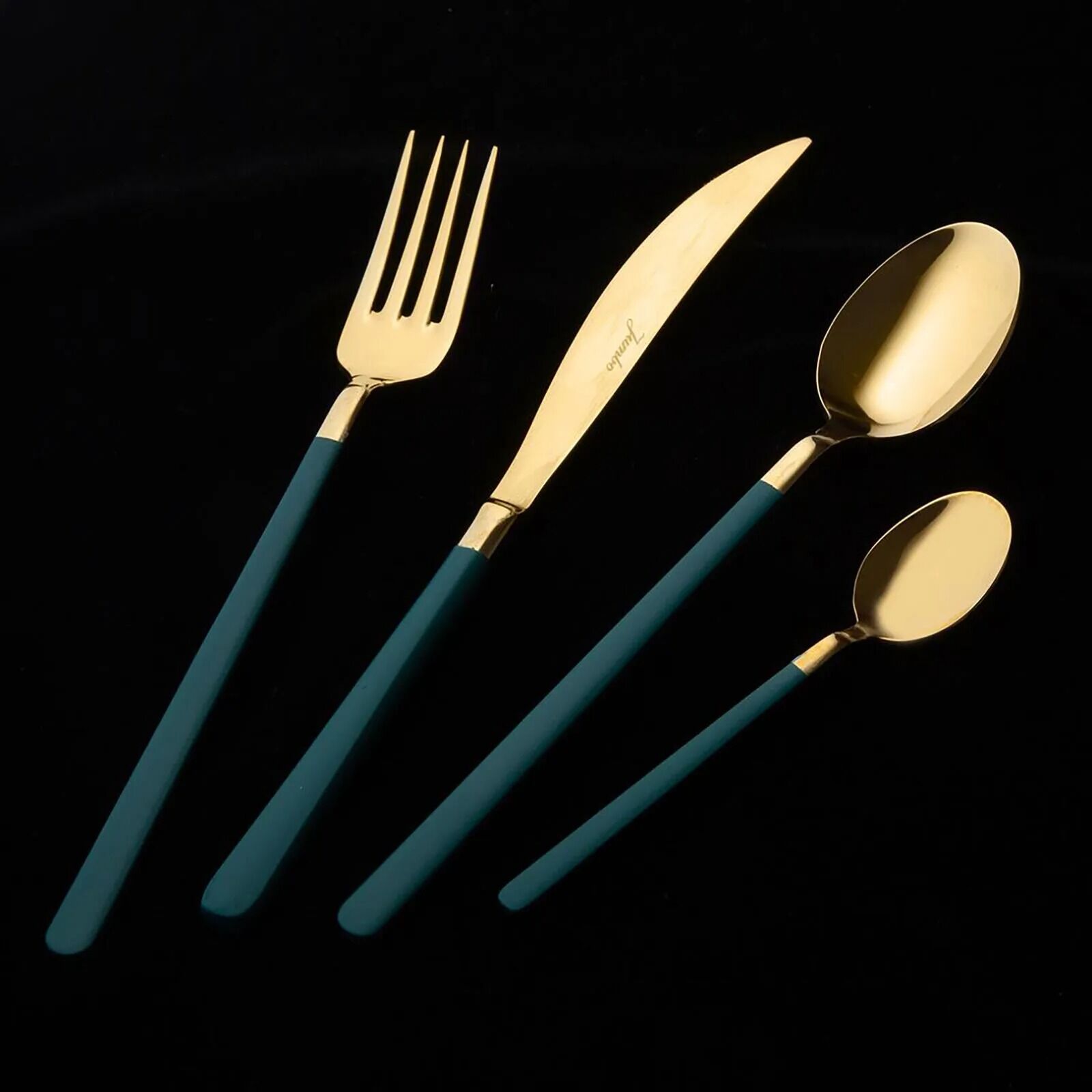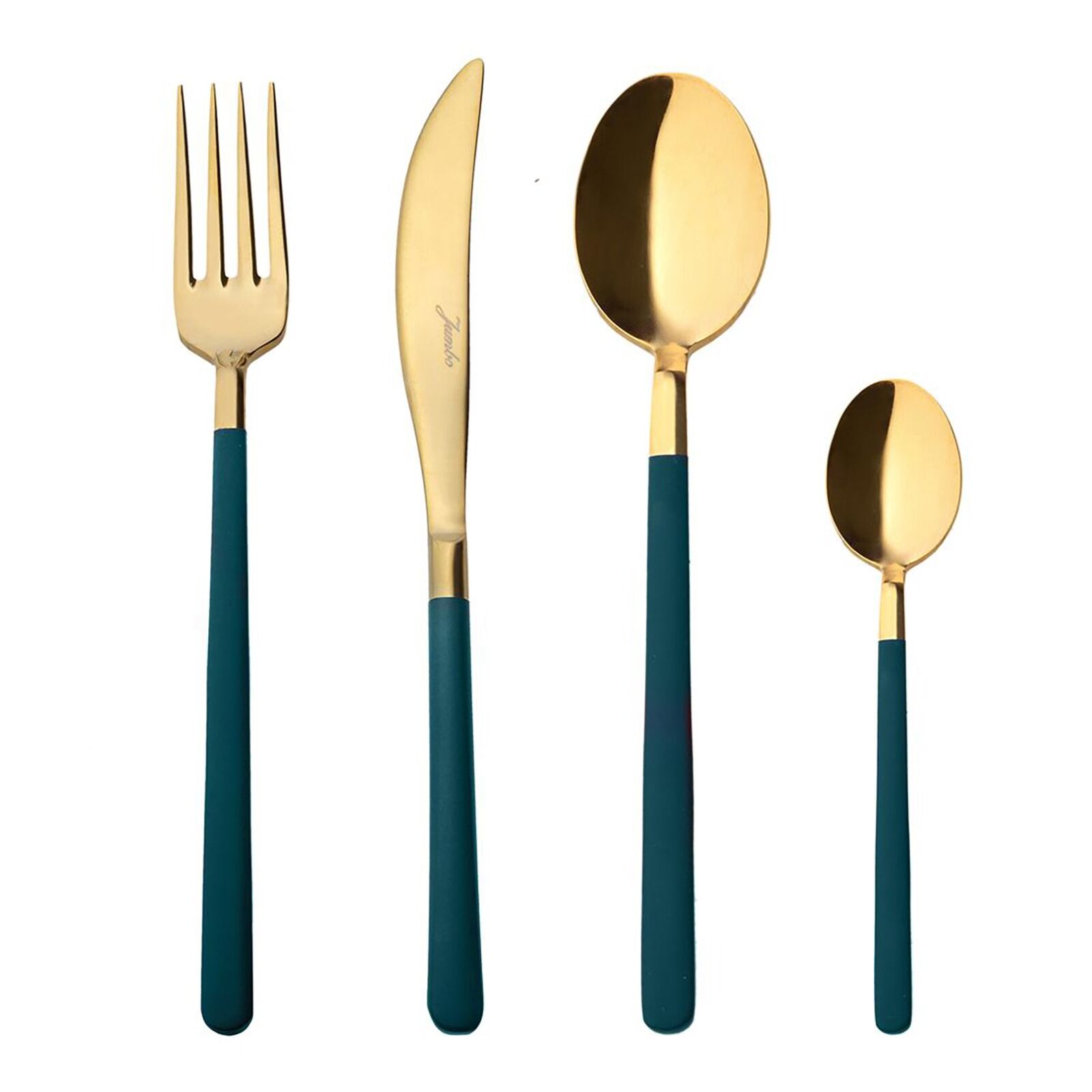 Jumbo Paint Mat Green Gold 6 Kişilik 24 Parça Tatlı Çatal Kaşık Bıçak Takımı