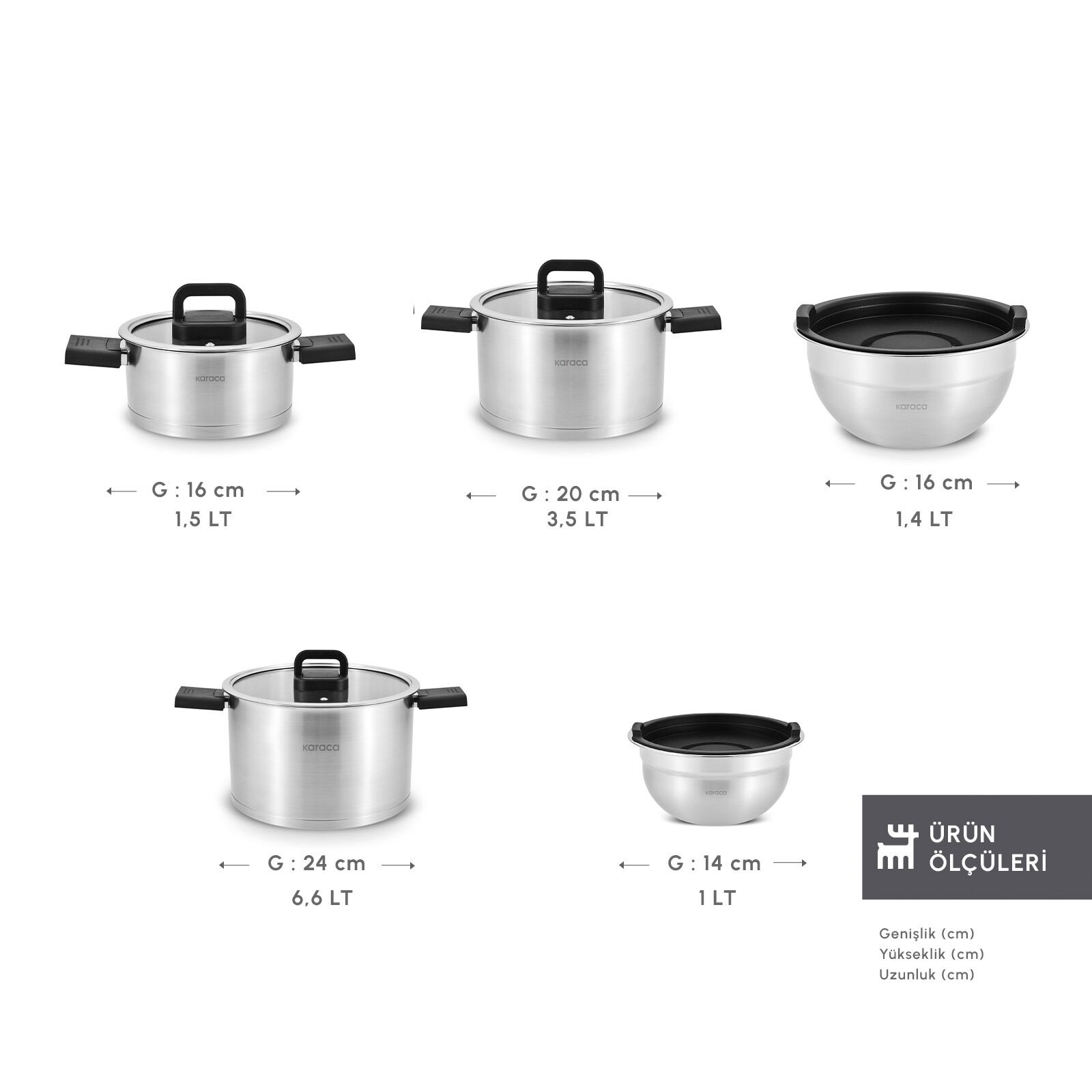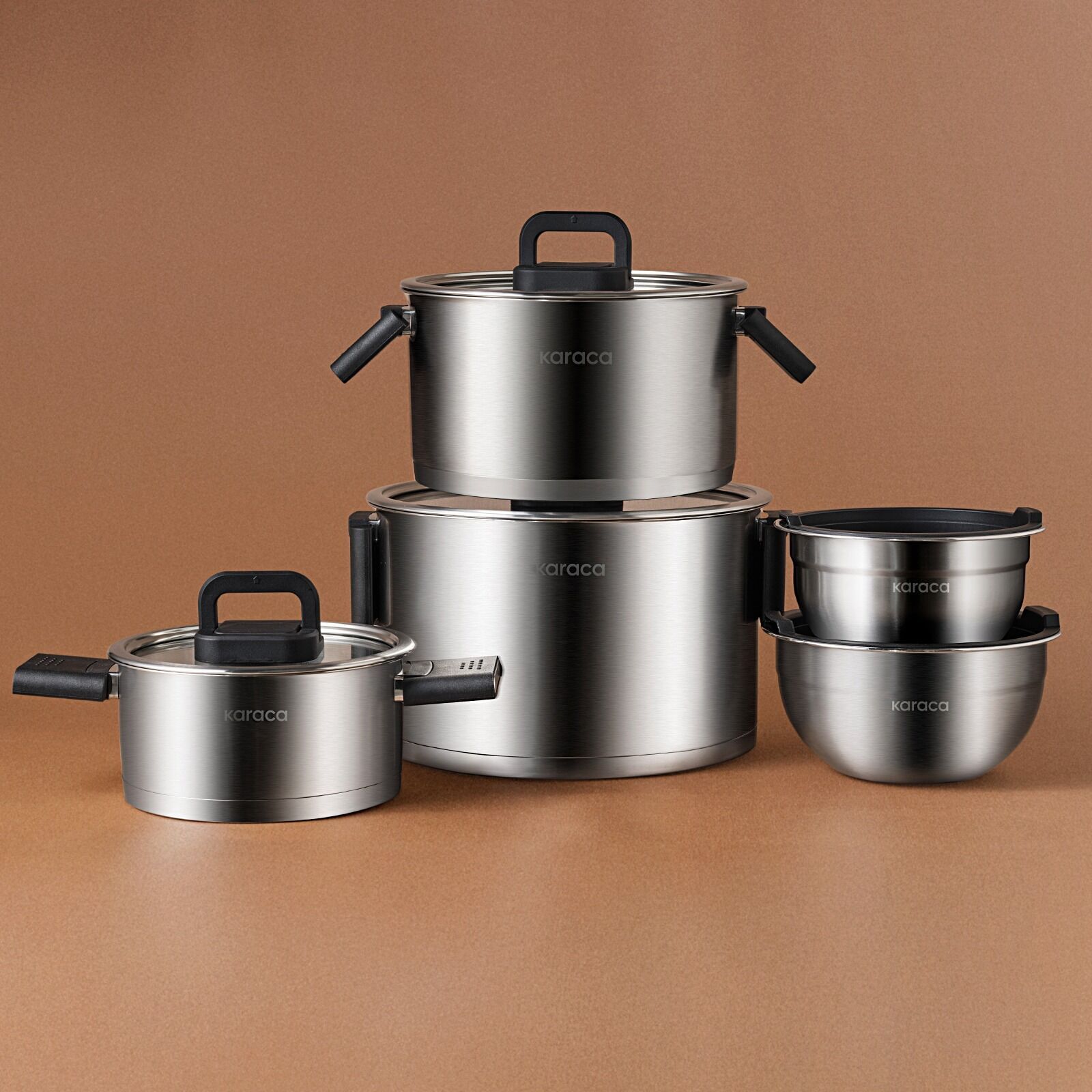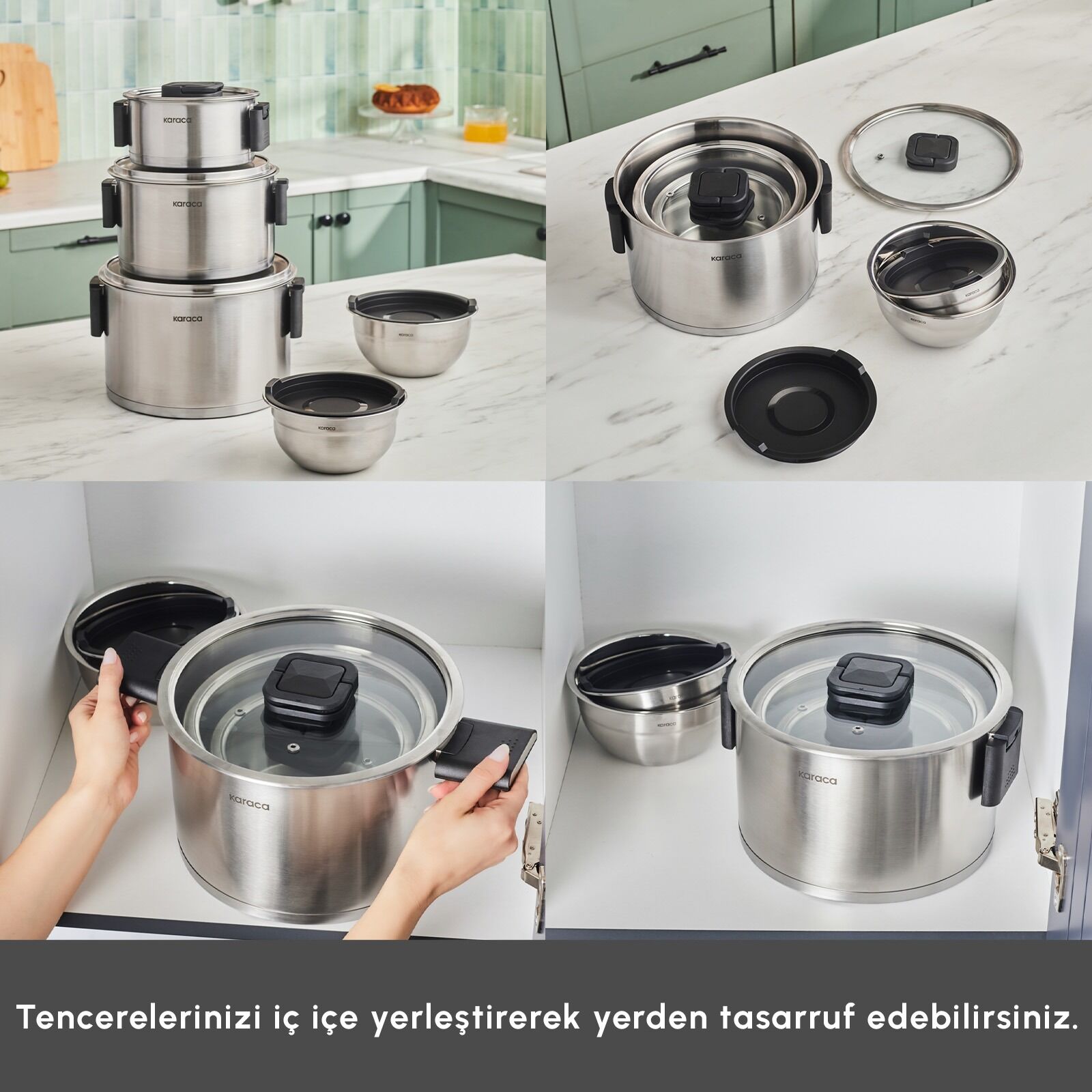Karaca Aşiyan Katlanabilir Kulplu 10 Parça Çelik Tencere Seti