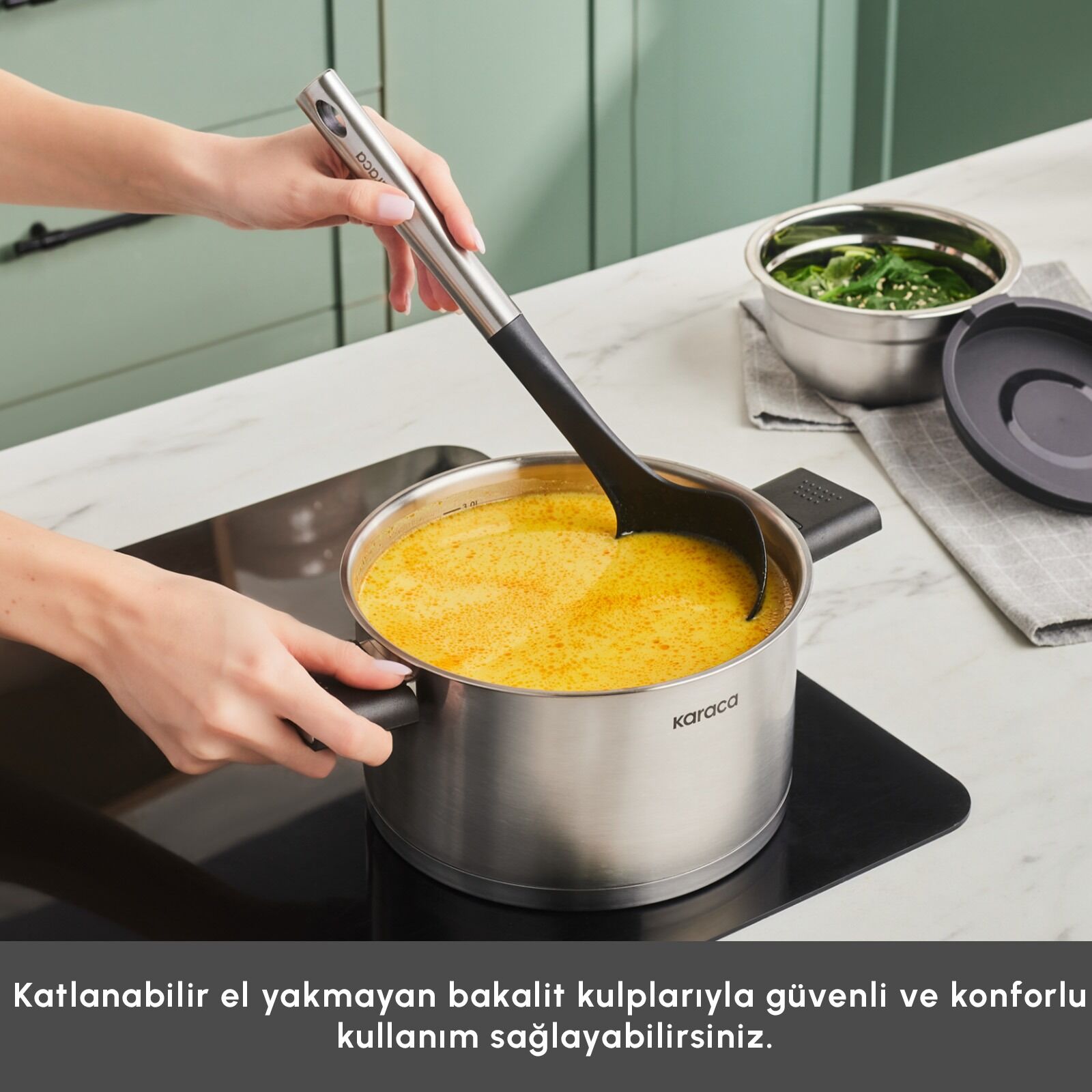 Mutfakta şıklığı, işlevselliği ve dayanıklılığı bir arada arayanlar için tasarlanan Karaca Aşiyan 10 Parça Çelik Tencere Seti, yemek pişirme deneyimini bir üst seviyeye taşıyor. Yüksek kaliteli 18/10 paslanmaz çelik yapısı, geniş parça içeriği ve çoklu ocak uyumluluğu ile her mutfağın olmazsa olmazı olmaya aday.
