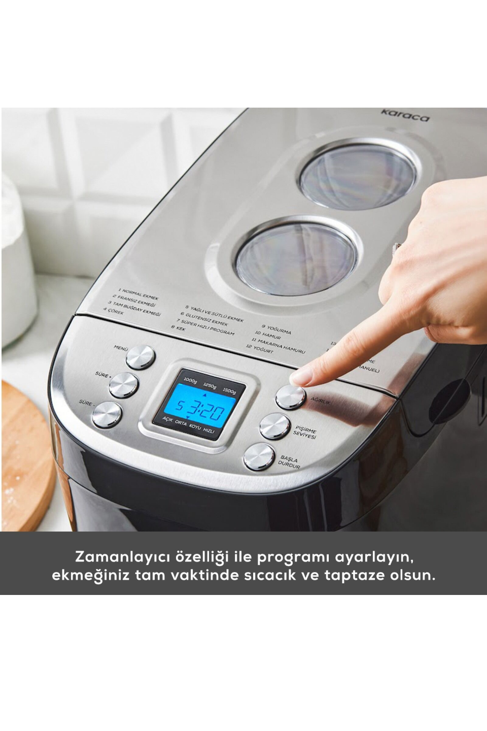 - Zamanlayıcı özelliği ile istediğiniz saatte programı kurarak sahur ve kahvaltınız için fırından çıkmış gibi sıcacık ekmekler hazırlayabilirsiniz.