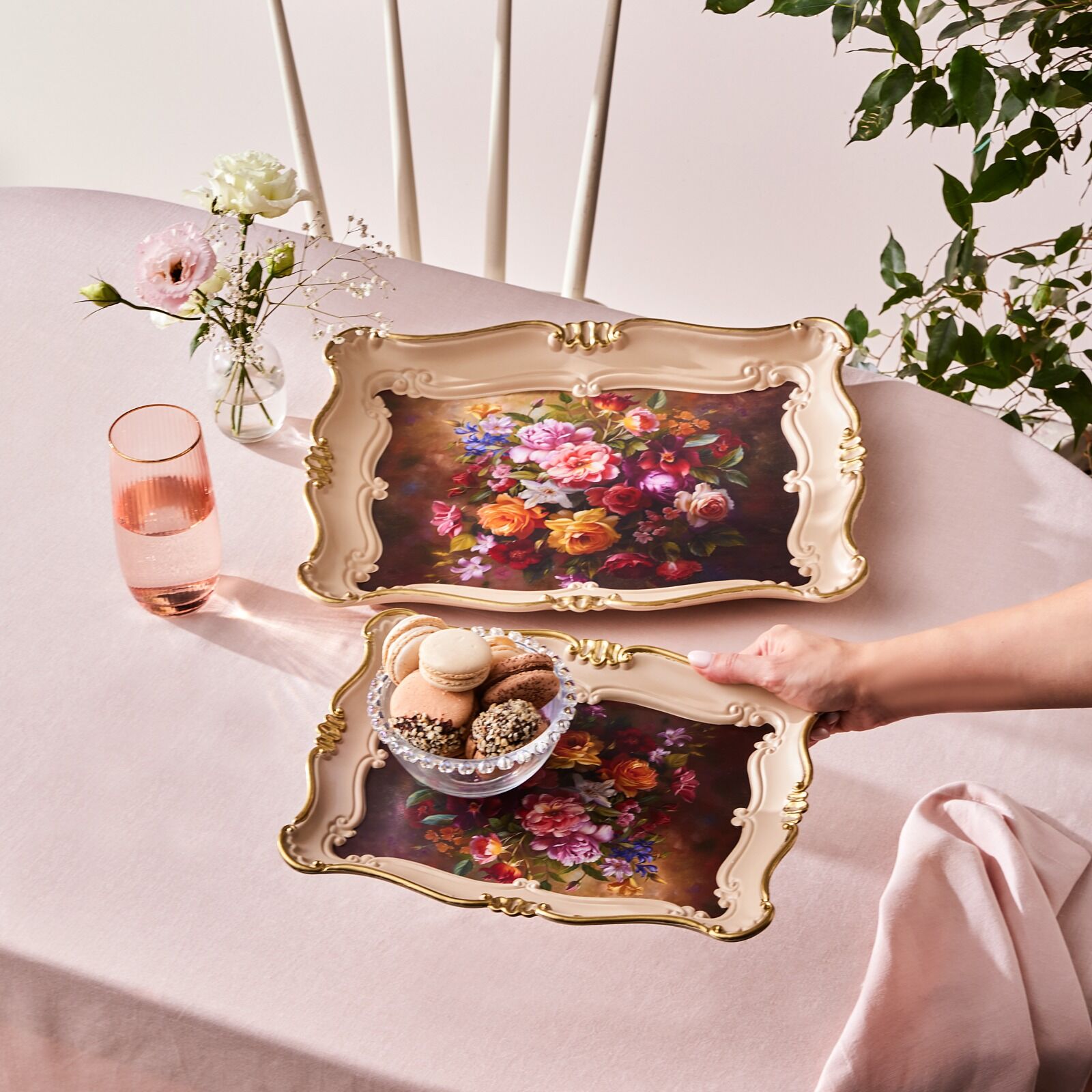 Karaca Barok İkili Dikdörtgen Tepsi 42 Cm Renkli