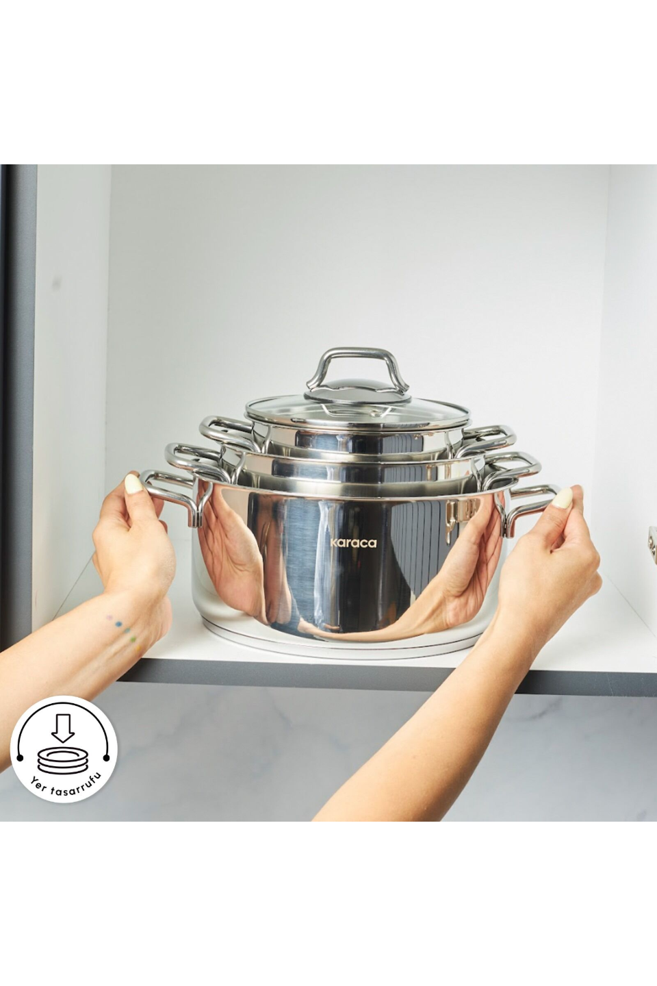 Mutfakta şıklık, dayanıklılık ve üstün pişirme performansını bir araya getiren Karaca Belgrad İndüksiyon Tabanlı 15 Parça Çelik Çeyiz Seti, yeni başlangıçlar için mükemmel bir seçim!