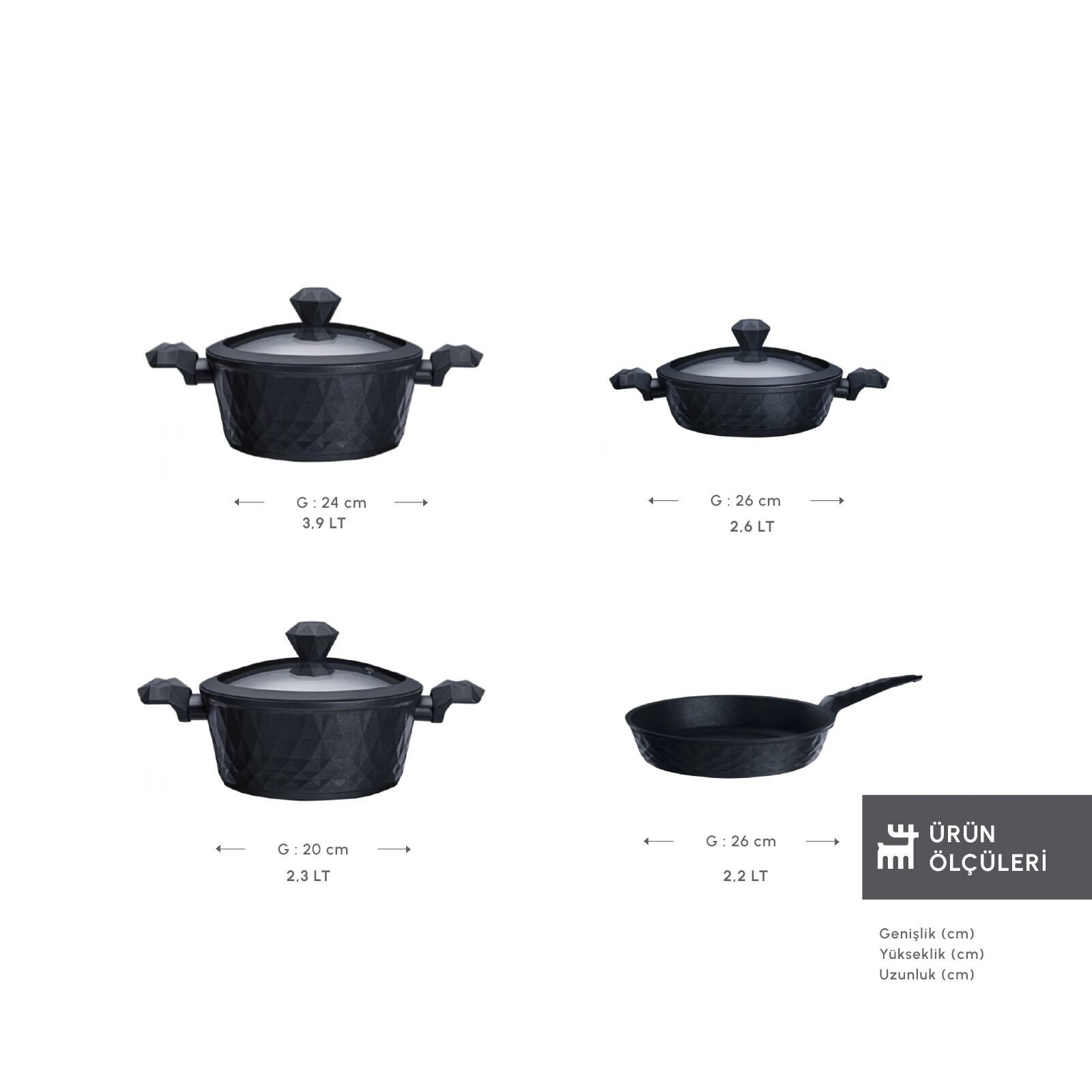 - 24 cm Derin Tencere- 3,9 lt