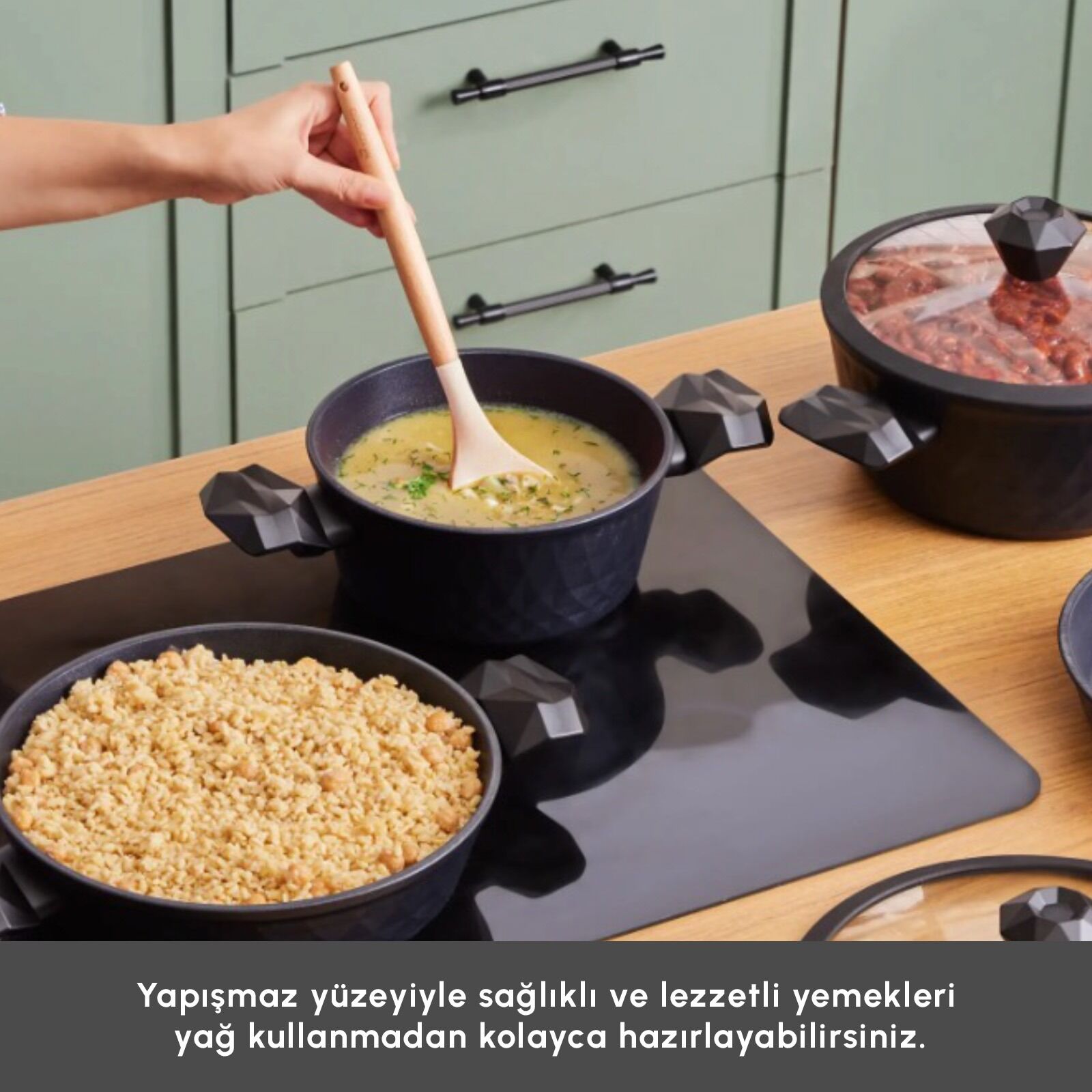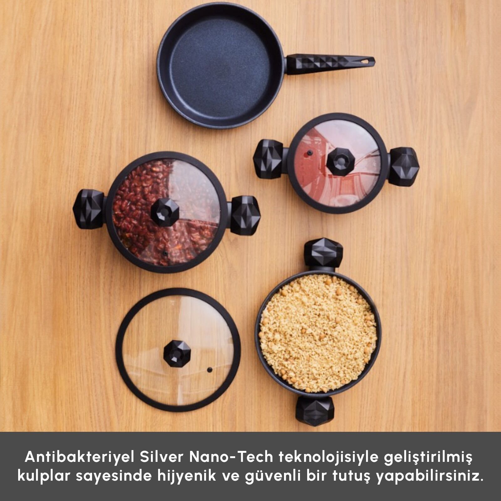 Elmas dayanıklığı, antibakteriyel hijyen ve sağlıklı pişirme bir arada.
