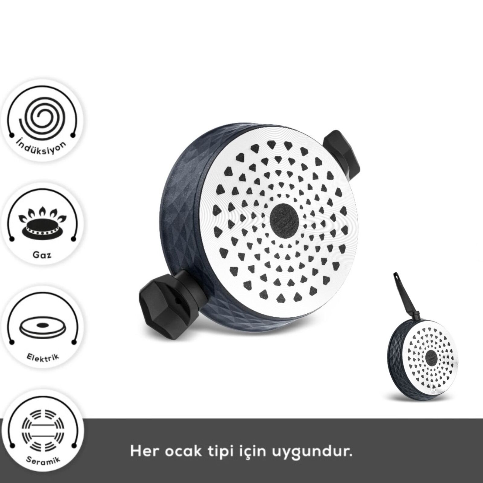 Tüm Ocak Tiplerine Uyumlu; İndüksiyon dahil olmak üzere gaz, elektrik, seramik ocaklarla uyumludur. Isıyı eşit dağıtan tabanı ile profesyonel pişirme deneyimi sunar.