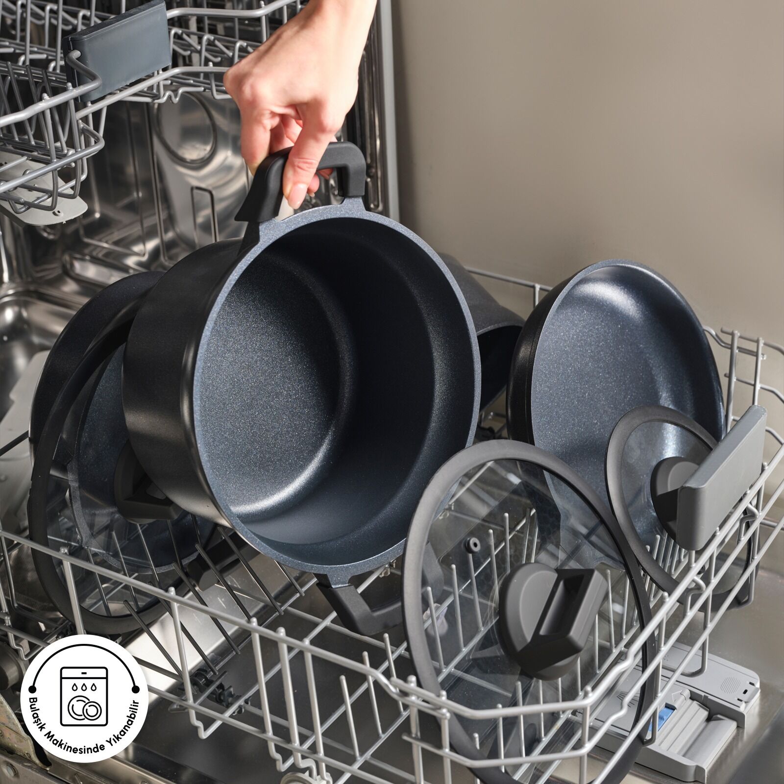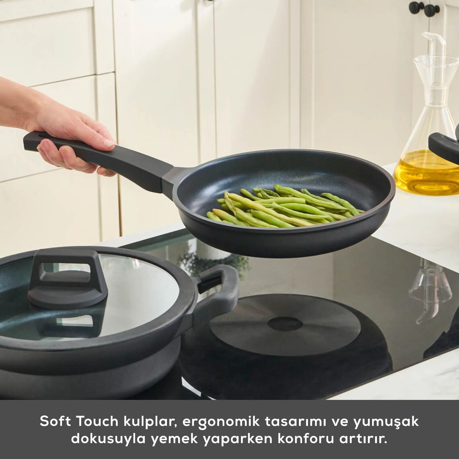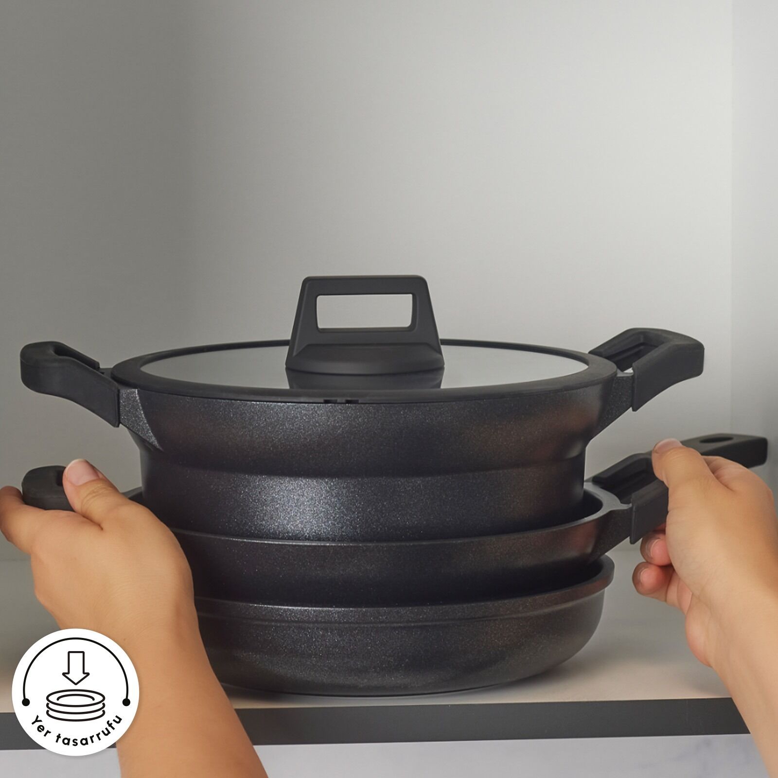 Kullanım Kolaylığı ve Şıklık:Şık ve ergonomik kulpları, kullanım sırasında konfor sunarken estetik görünümüyle mutfağınıza modern bir dokunuş katar.
