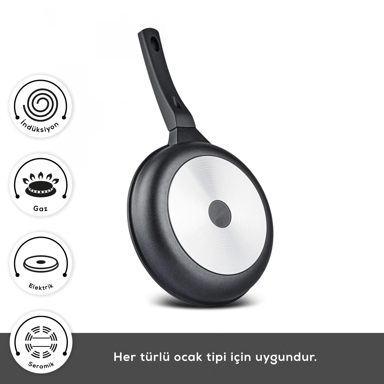 Isıyı Eşit Dağıtan Akıllı Yapı:Bakırdan 4 kat daha iletken alüminyum ara katman, ısının tüm yüzeye eşit dağılmasını sağlar. Bu sayede yemekler homojen pişer, lezzeti katlanır ve enerji tasarrufu sağlanır.