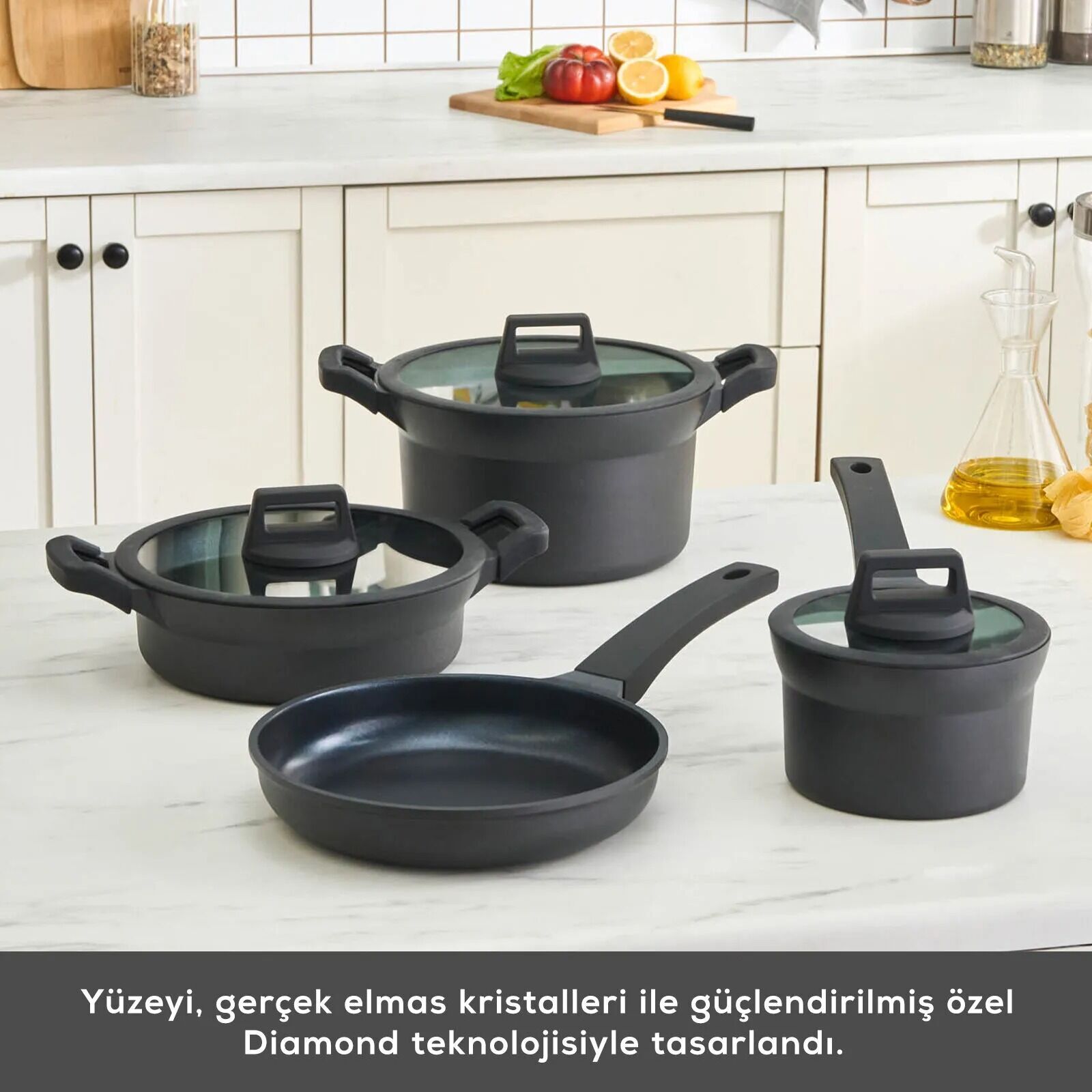 Ultra Dayanıklı Diamond Kaplama:İç ve dış yüzeyi, çizilmelere karşı son derece dirençli özel diamond kaplama ile güçlendirilmiştir. Maksimum yanmaz ve yapışmaz özellik sayesinde yemekleriniz hem daha sağlıklı hem de daha lezzetli pişer.