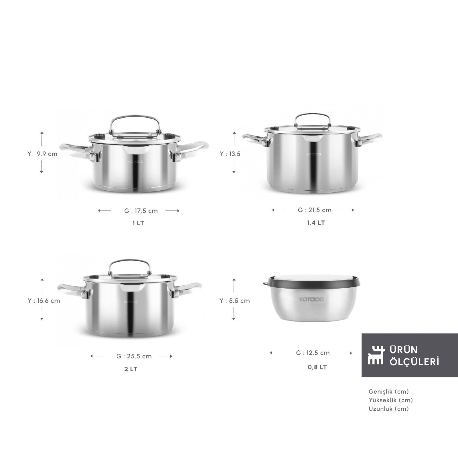 Yüksek Kalite Malzeme: 18/10 paslanmaz çelik kullanılarak üretilen tencereler, çizilmelere ve ısıya karşı yüksek dayanıklılık sağlar.