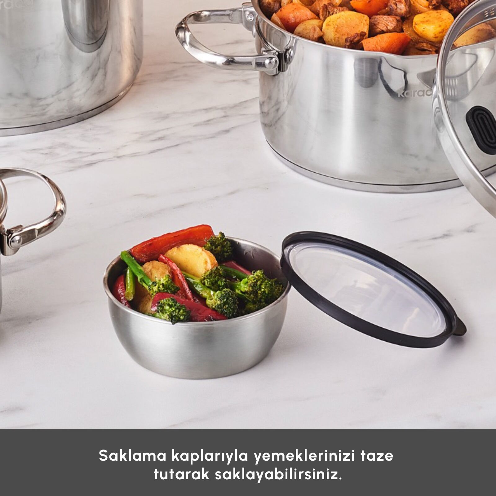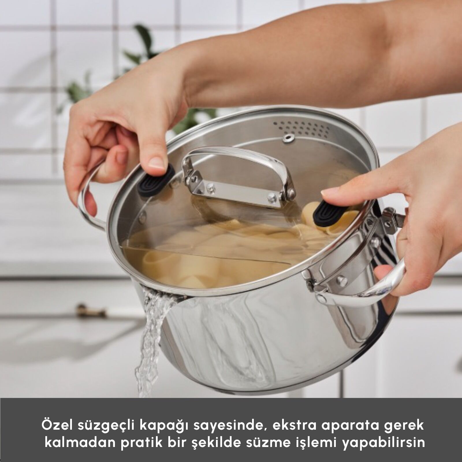 Çok Fonksiyonlu Kapaklar: Süzgeçli kapakları ile haşlama ve süzme işlemlerini zahmetsiz hale getirir.
