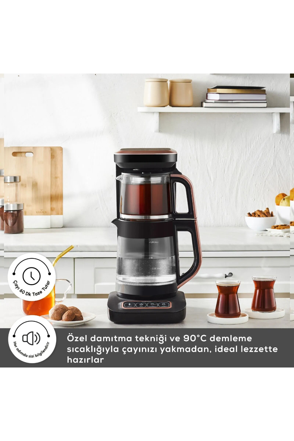 “Otomatik Çay Demleme” özelliği sayesinde tek tuşla 15 dakikada çayınız hazırlanır ve 60 dakika boyunca taptaze kalır. Özel “Damıtma Tekniği” ve 90 derece demleme suyu sıcaklığı ile çayı yakmadan ideal lezzette demler.