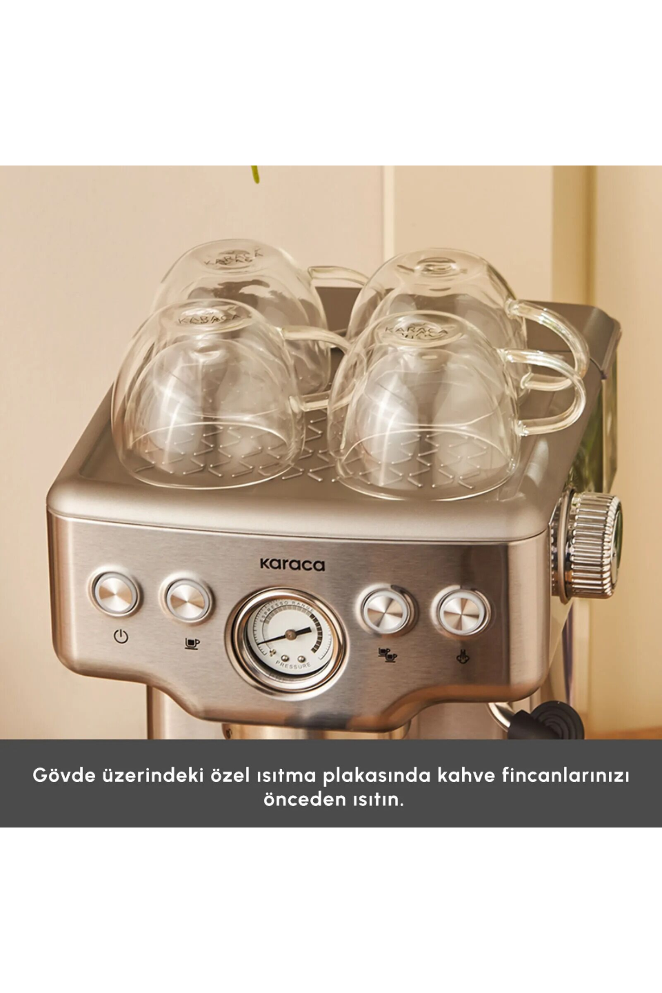 Fincan ısıtma plakası ile kahve fincanlarınız için ön ısıtma yapabilir, kahvenizin daha uzun süre sıcak kalmasını sağlayabilirsiniz