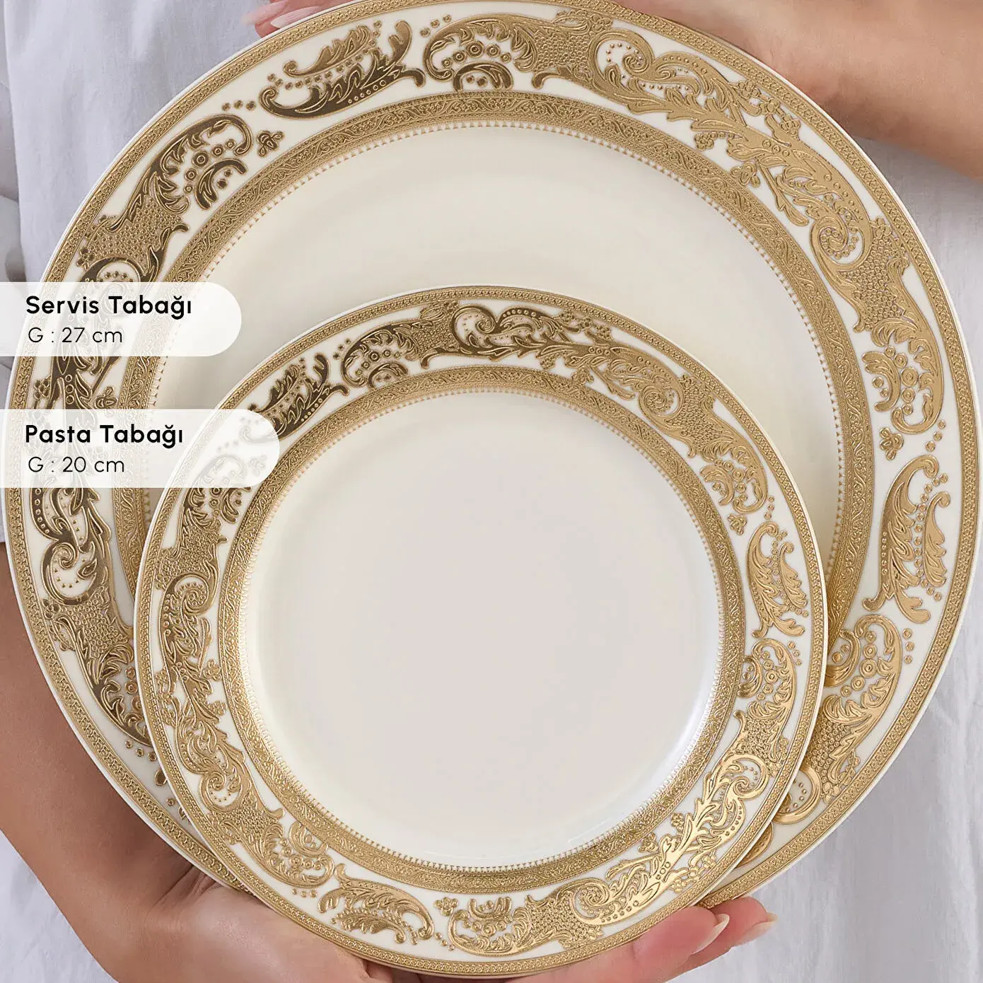 Kemik tozu içeren porselen yapısı sayesinde son derece hafif, aynı zamanda uzun ömürlü ve dayanıklıdır. Hem günlük kullanıma hem de özel davet sofralarına uyum sağlayan bu seri, zarif tasarımı kadar pratikliğiyle de fark yaratır.