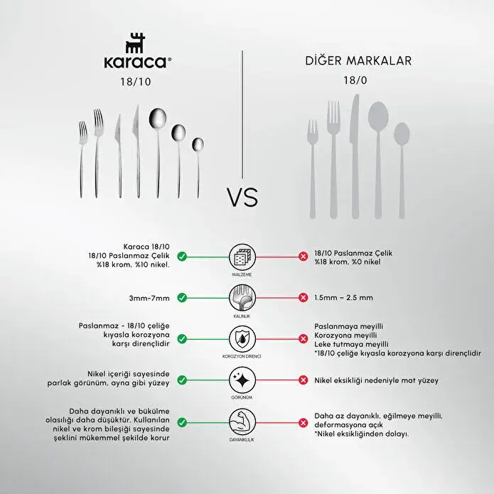 Kusursuz Yüzey: Nikel içeriği sayesinde ayna gibi parlaklık; sofralarda göz alıcı bir dokunuş.
