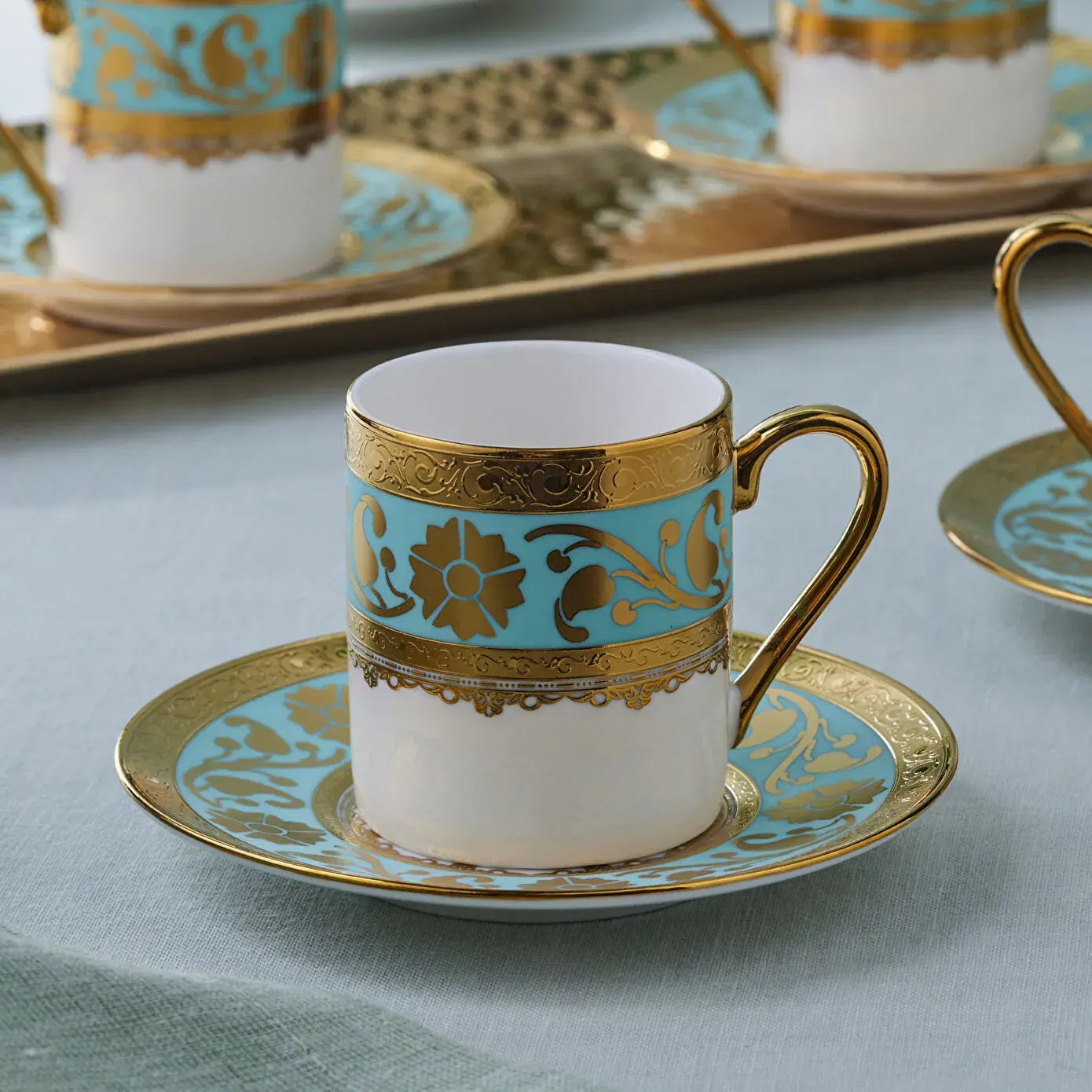 Karaca Gülfem 6 Kişilik Kahve Fincan Takımı Mavi 90 Ml