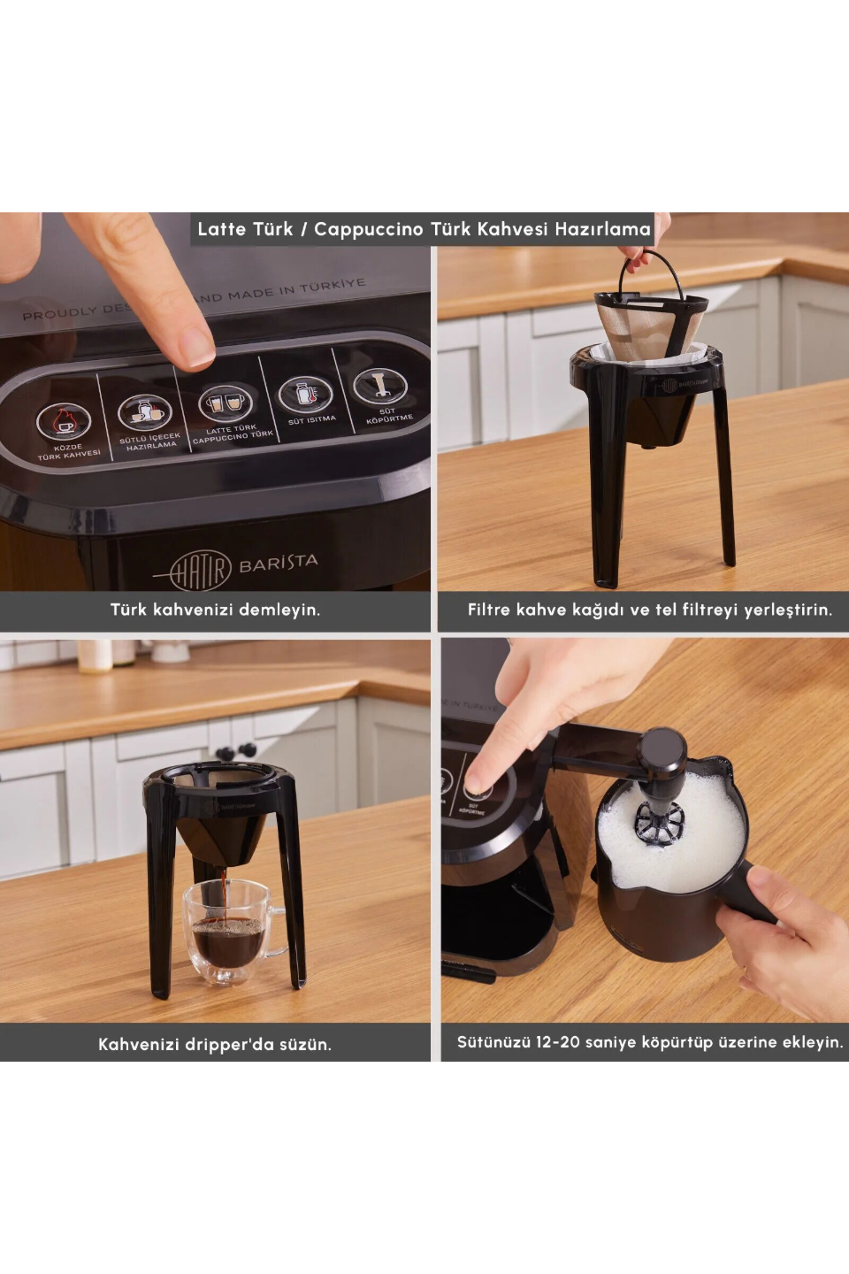 Hatır Barista ile başta Latte Türk ve Cappuccino Türk olmak üzere közde Türk kahvesi ve sütlü Türk kahvesi yapabilir, süt ısıtma özelliğiyle farklı sütlü içecekler hazırlayabilirsiniz.