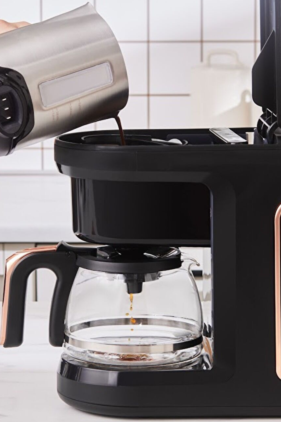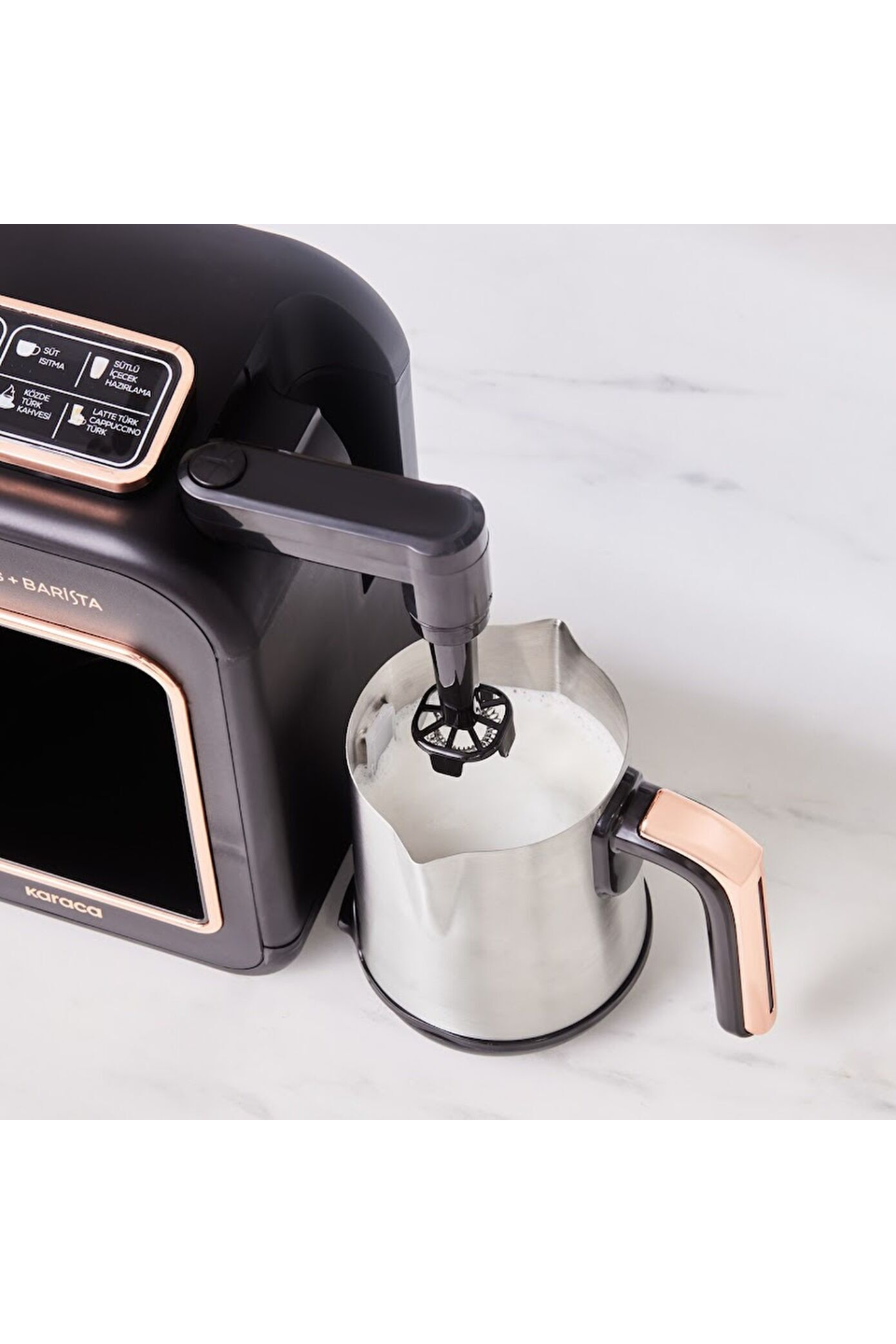 Karaca Hatır Plus Barista Steel 6 in 1 Konuşan Latte Cappuccino ve Közde Türk Kahve Makinesi Black Copper