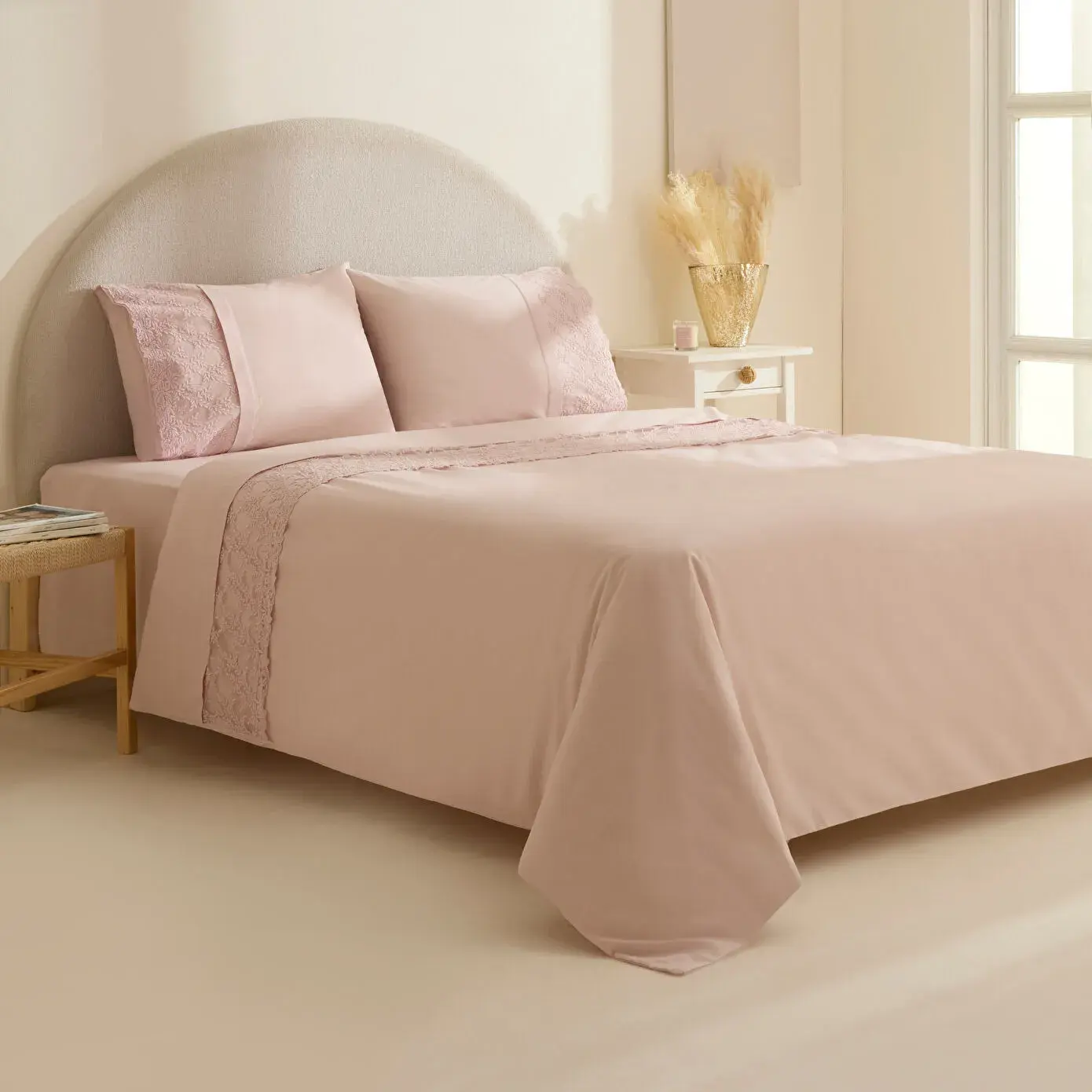 Karaca Home Elarıa Dantelli Çift Kişilik Nevresim Takımı Pudra