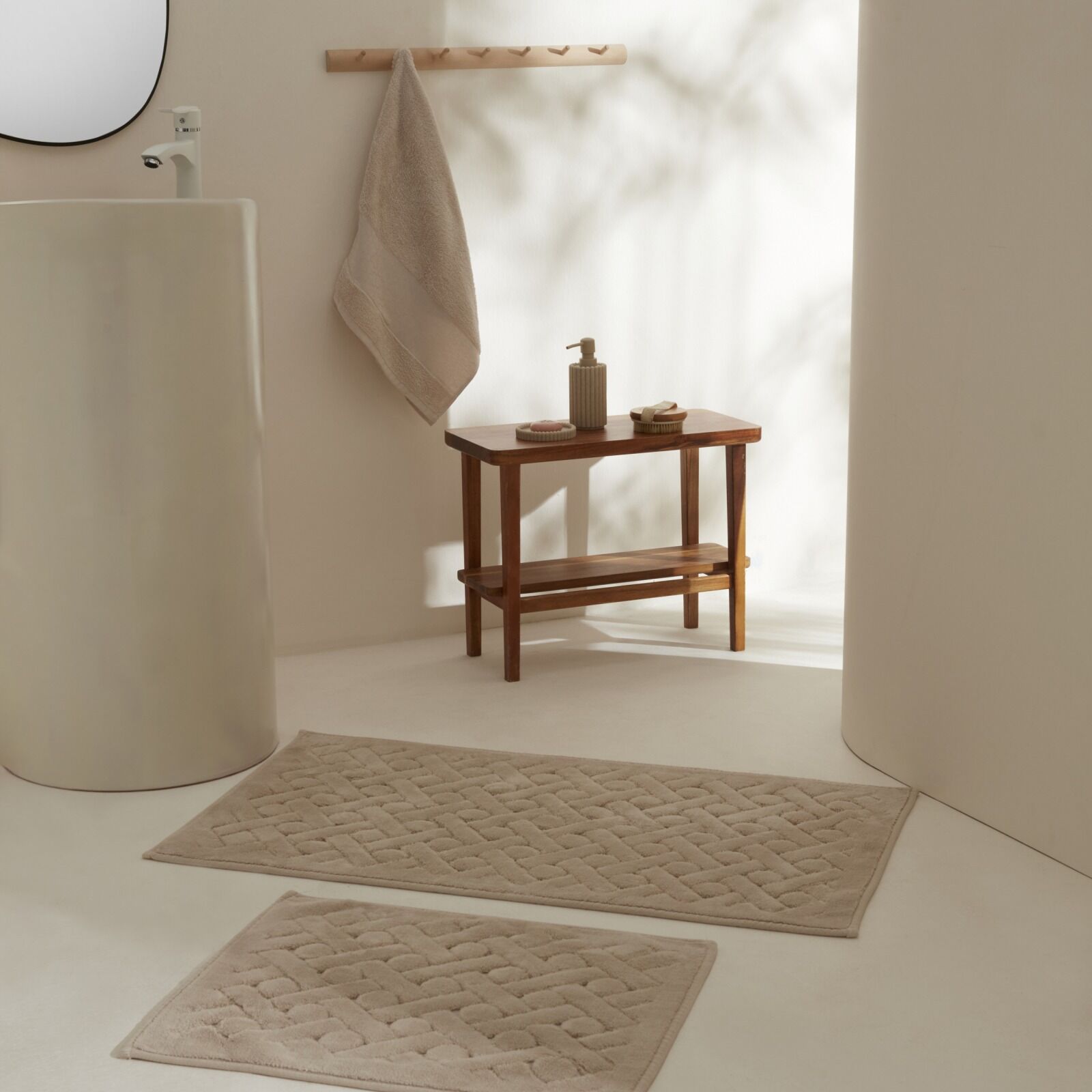 Karaca Home Foley 2'li Banyo Paspası Bej