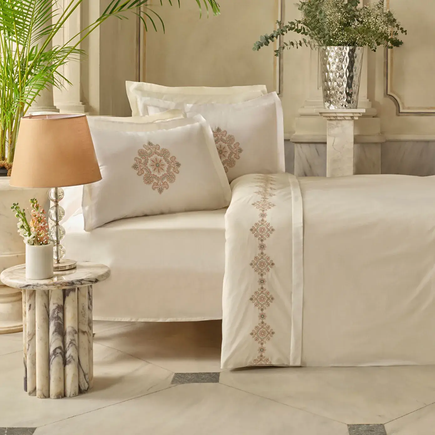 Karaca Home Kelsey Nakışlı %100 Pamuk Çift Kişilik Nevresim Takımı Beyaz