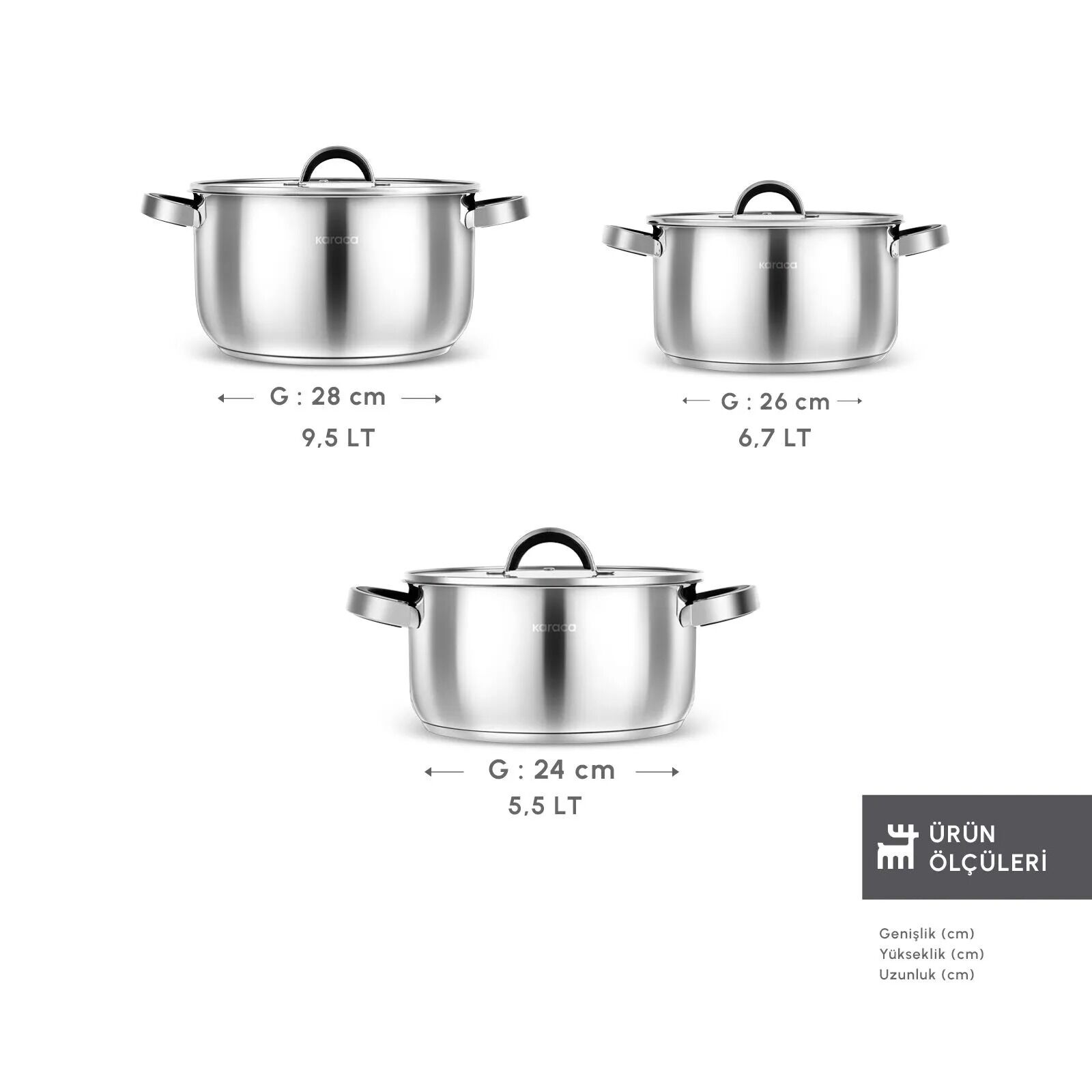 Karaca Magnus XLarge İndüksiyon Tabanlı 6 Parça Çelik Tencere Seti