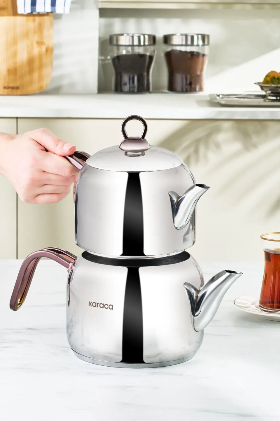 Taze demlenmiş bir çaya hangimiz “hayır” diyebiliriz ki. Karaca Manes Ortaboy Çaydanlık Takımı, paslanmaz çelik yapısı ile sağlıklı ve uzun ömürlüdür. 1.35 Litre üst demliği, 1.95 Litre alt suluğu ile sevdiklerinizle çay keyfinize keyif katar. Pembe kulpları hem mutfağınıza hem de sunumlarınıza sade bir şıklık katar. İndüksiyonlu ocaklar da dahil, tüm ocaklarda güvenle kullanabilirsiniz.
