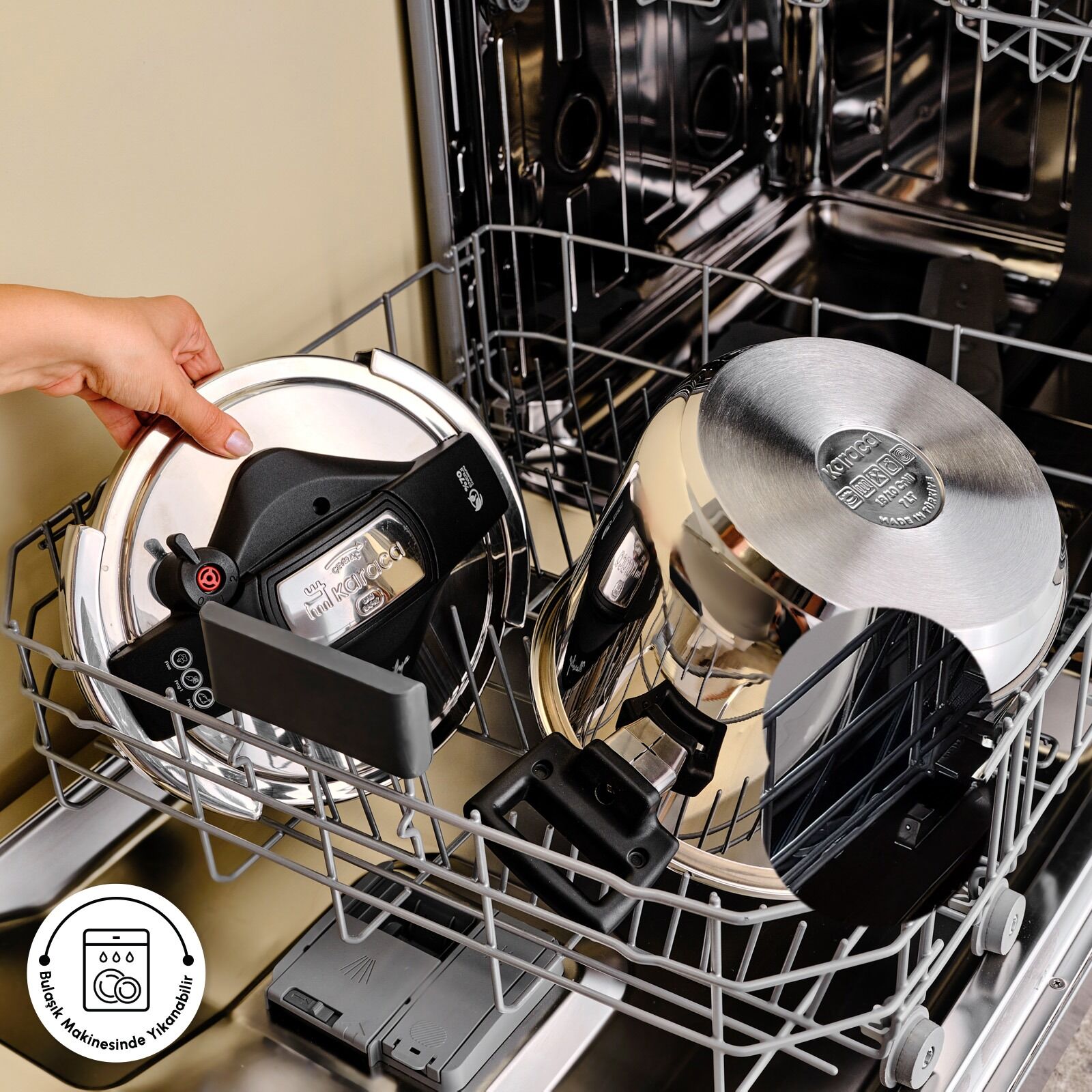 - Paslanmaz çelikten üretilen düdüklü tencere uzun ömürlü kullanım vadeder.