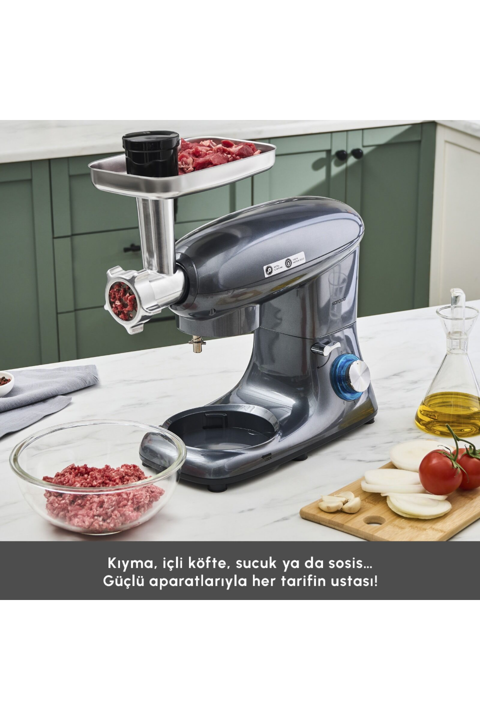 - 3 farklı kıyma bıçağı olan kıyma aparatı.