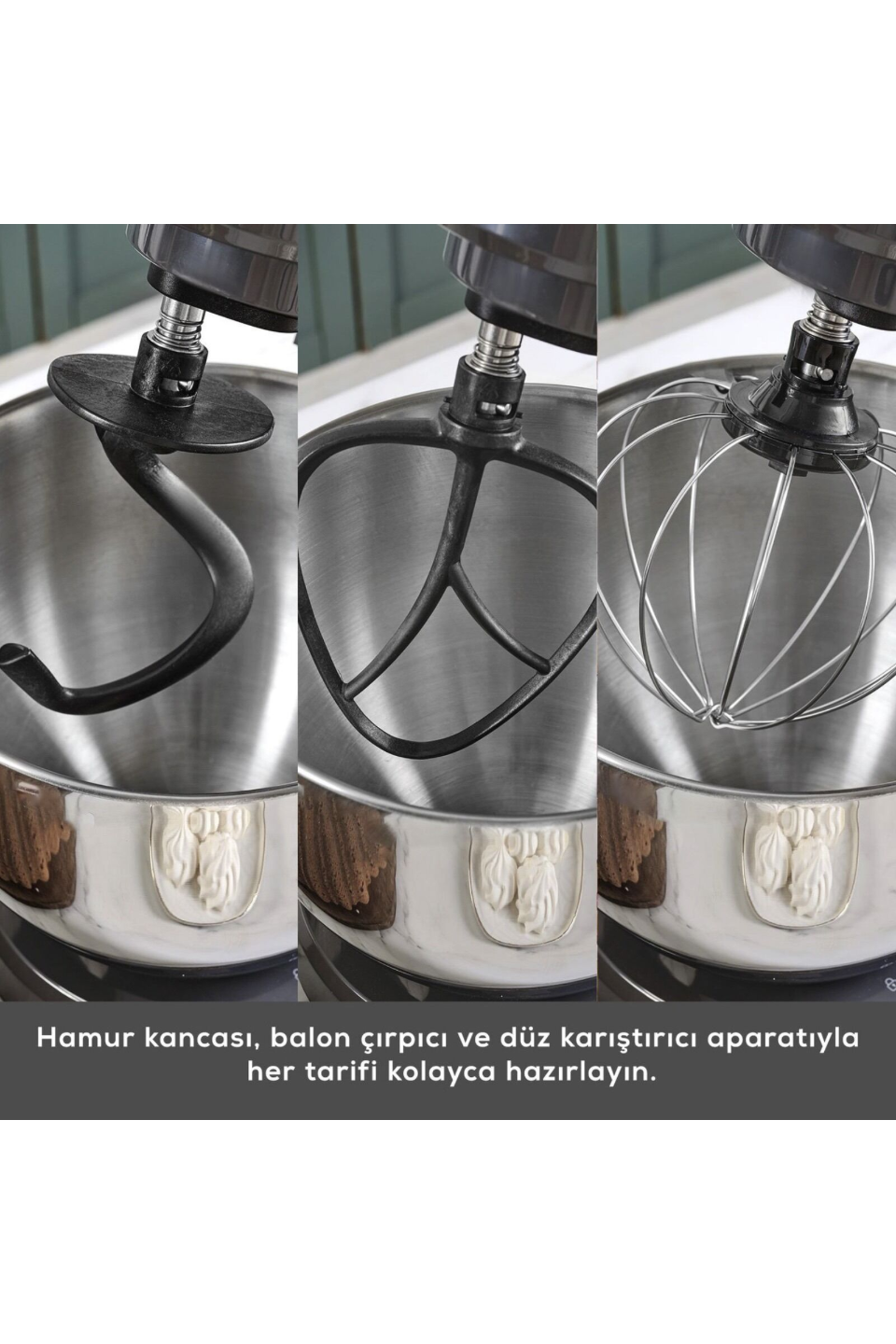 - Yoğun hamurlar için Hamur Kancası.