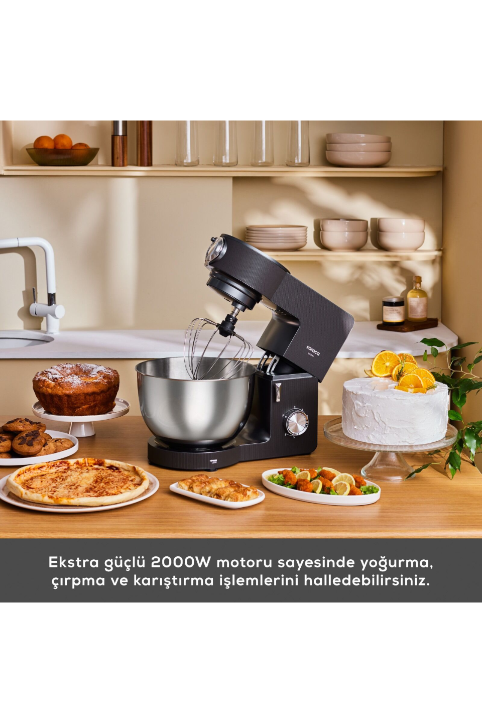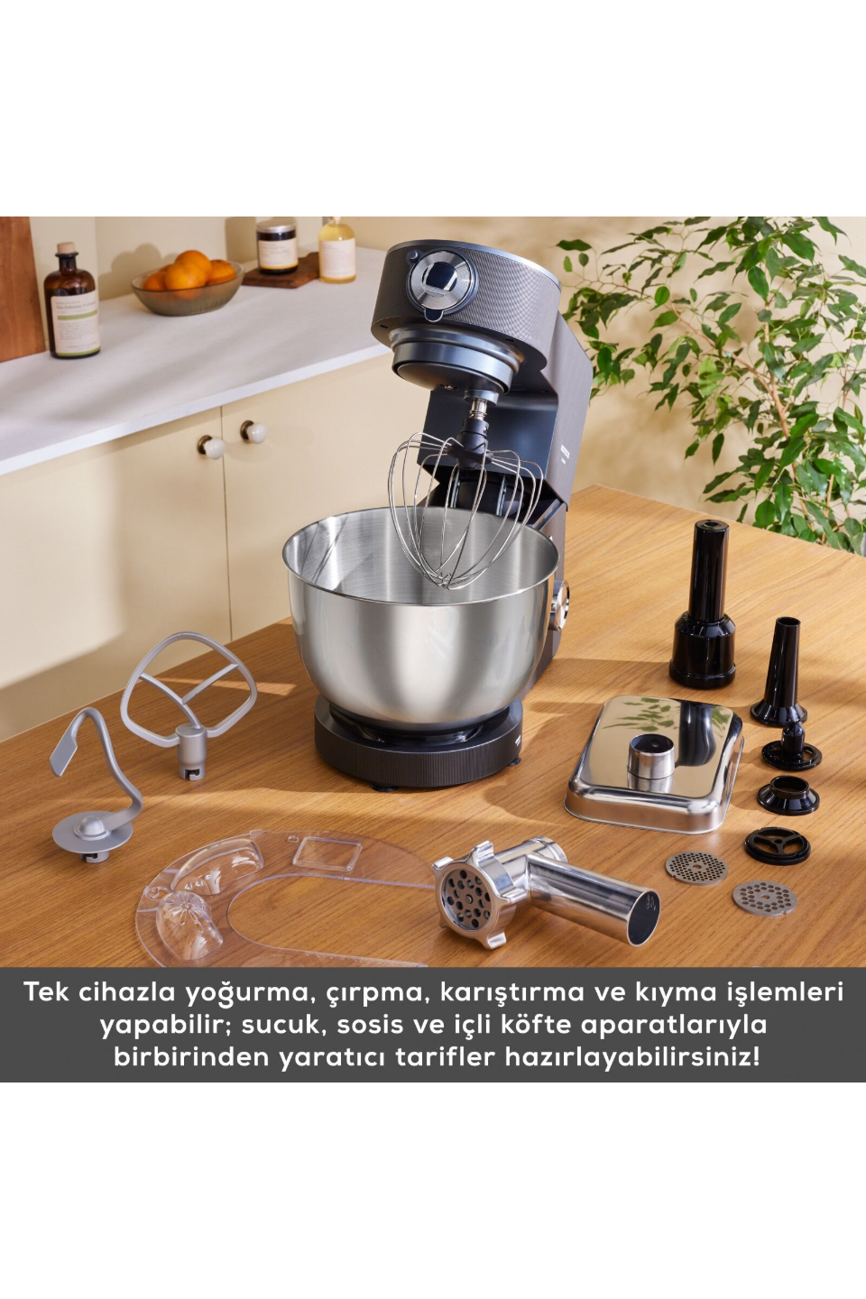 Karaca Multichef Ultra Kıyma Çekme/Sucuk-Sosis/İçli Köfte Aparatlı Hamur Yoğurma Makinesi Antrasit 2000W 7L