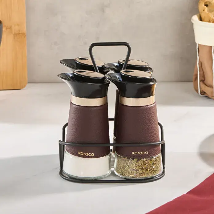 Baharatlarınızı şık bir şekilde saklayın! Karaca New Latin Baharat Seti, modern tasarımı ve kahverengi cam detaylarıyla mutfağınıza zarif bir dokunuş katıyor.