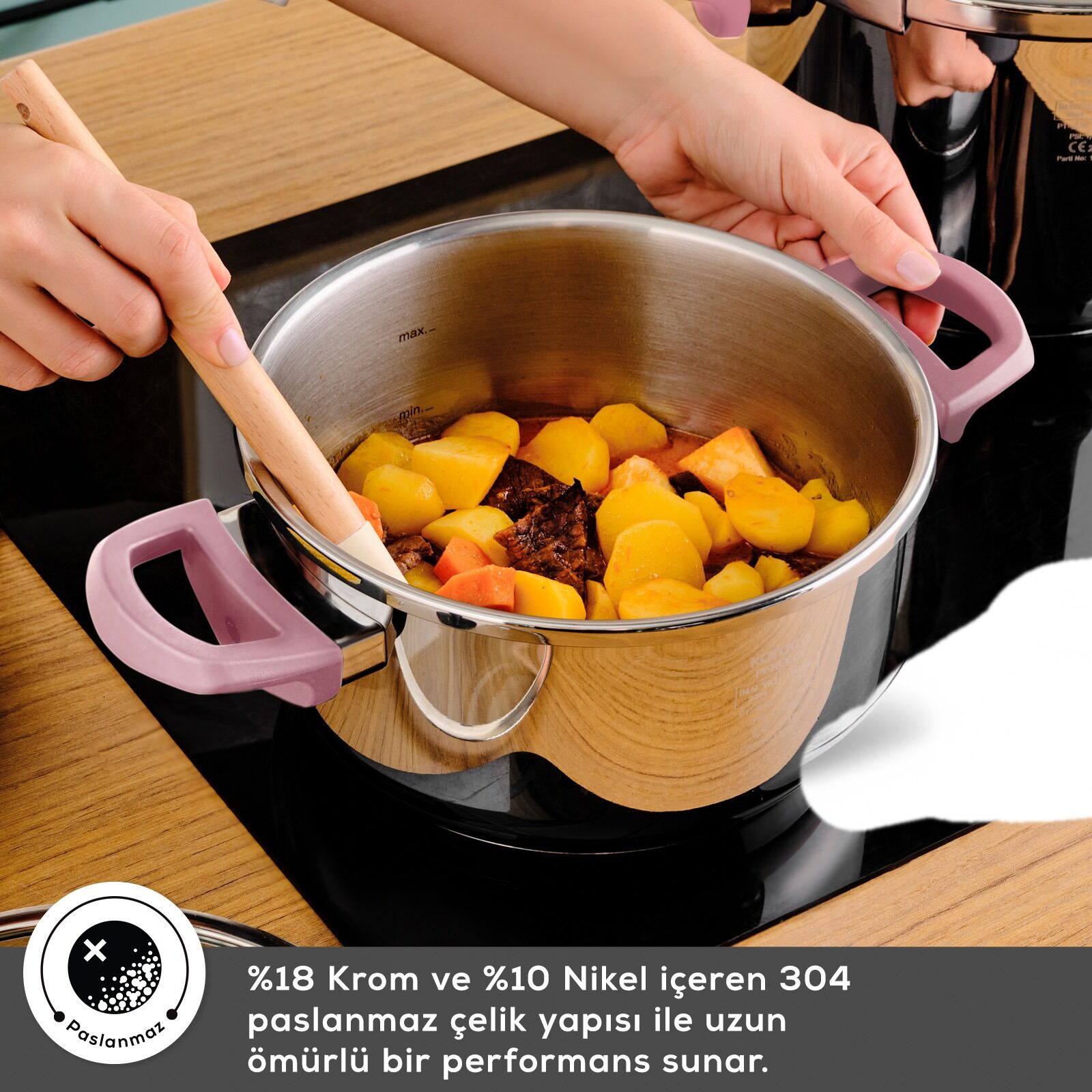 - İndüksiyonlu ocaklarda kullanımı uygundur.