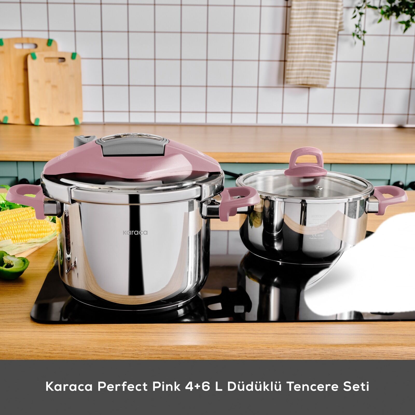 Karaca Perfect Pink İndüksiyon Tabanlı Düdüklü Tencere Seti 4+6 Lt