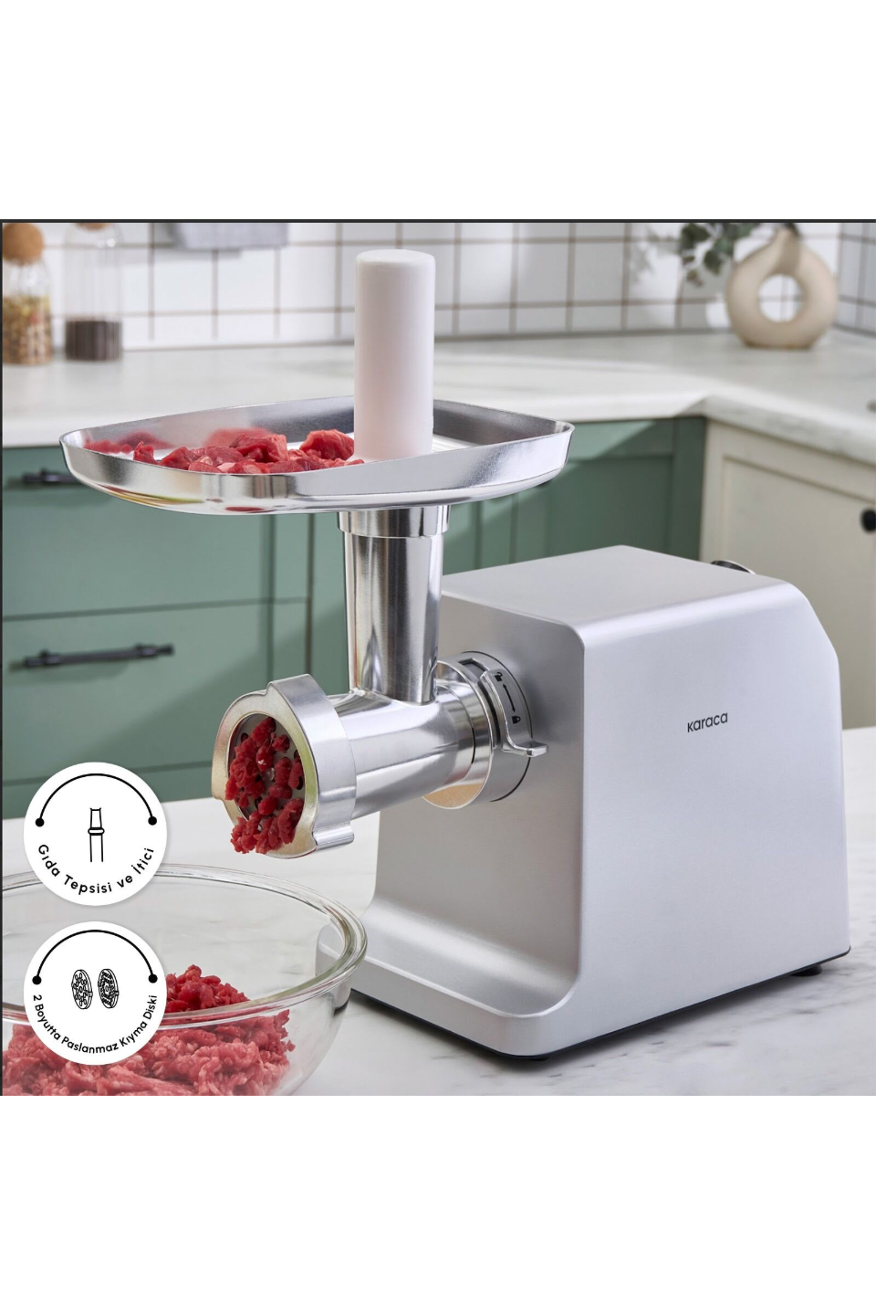 - 1800W güçlü motoru sayesinde dakikada 2,5 kg ’ye kadar et işleme kapasitesine sahiptir.