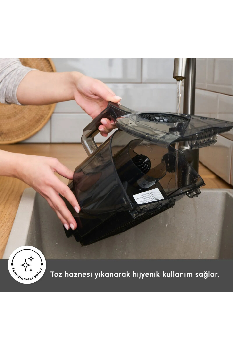 - Quick Clean Toz Haznesi; Ergonomik hazne açma tuşu ile toz haznesini tek tuş ile yerinden çıkarıp,