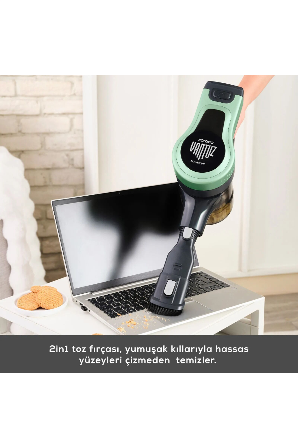 - Vantuz Power Up Max’ın 2 in1 Fırçası ile koltuk, perde gibi yüzeylerin temizliğini kolayca yapabilirsiniz.
