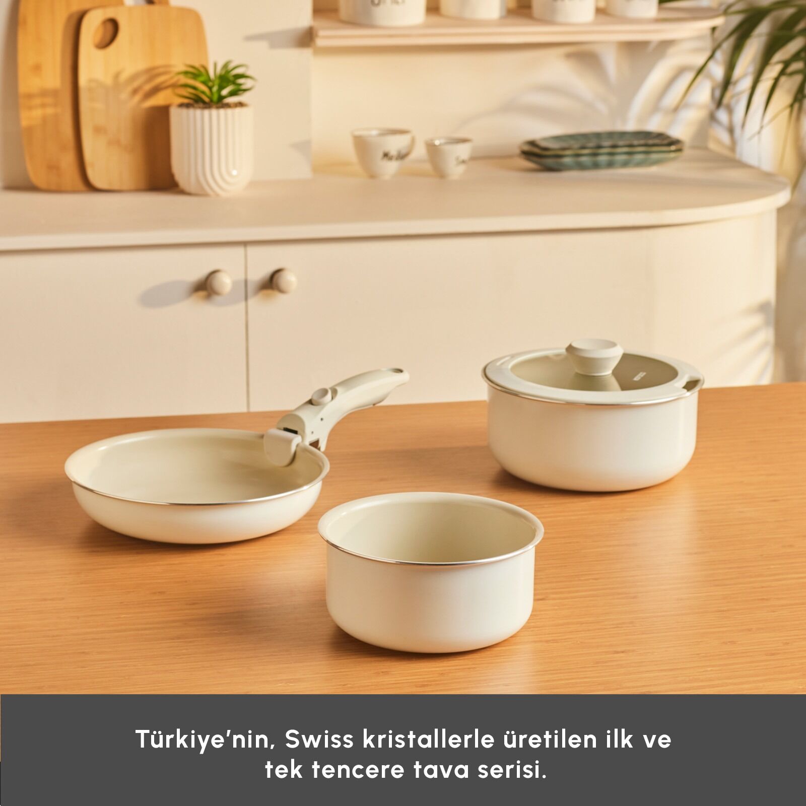 Karaca x Refika Swiss Crystal Almond Cream Easy Clip 5 Parça Tencere Seti