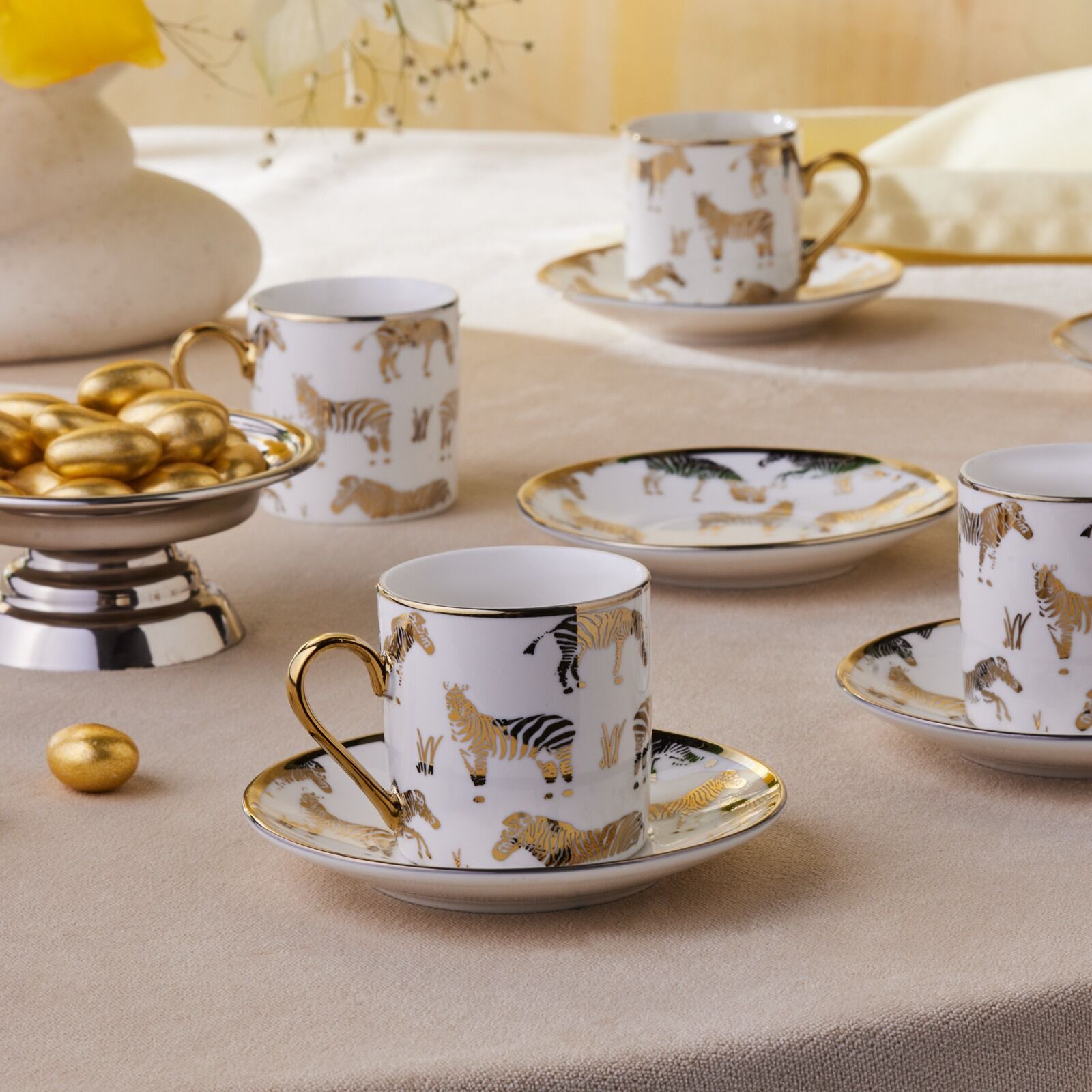 Karaca Zebra 6 Kişilik Kahve Fincan Takımı Gold 90 Ml