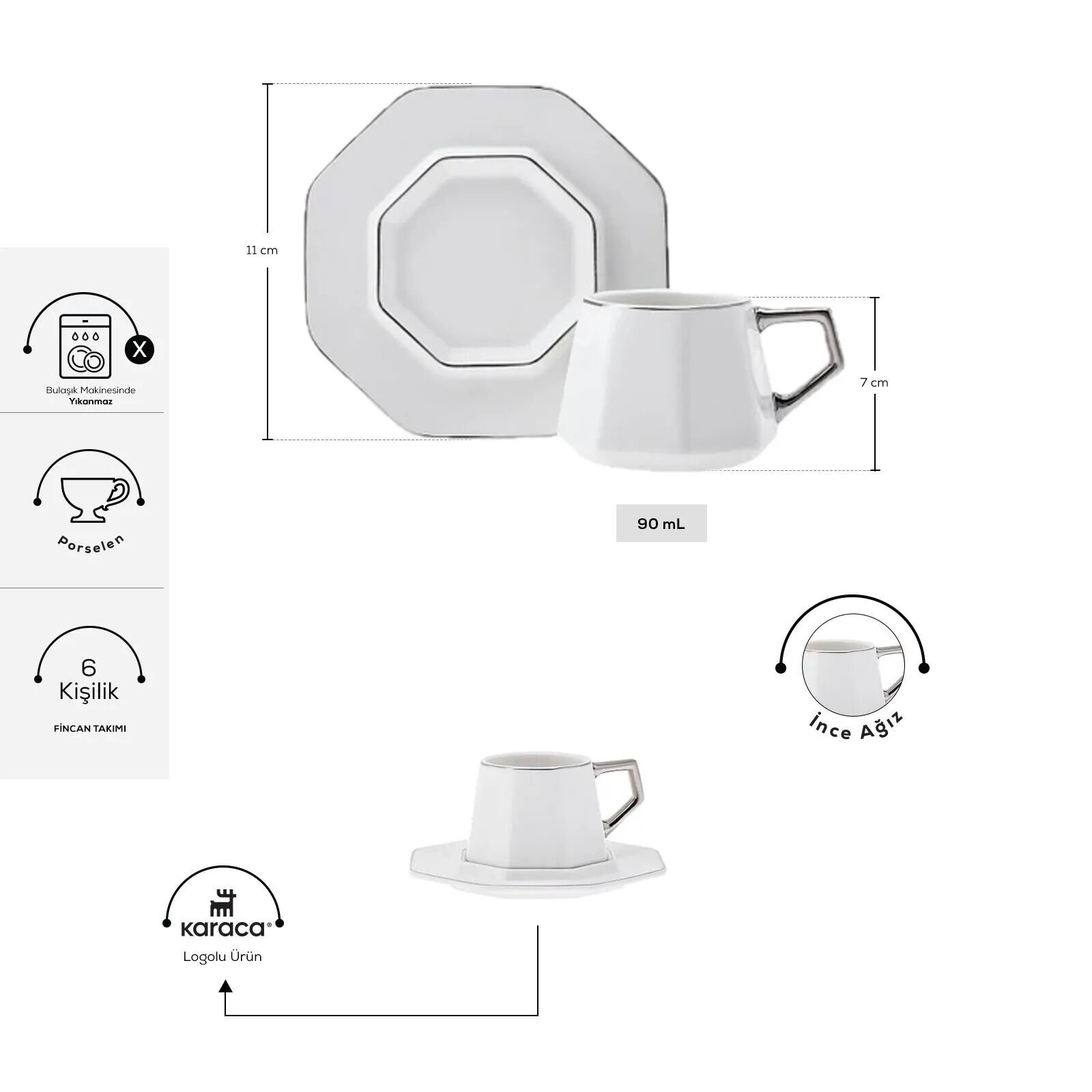 - 6 Adet Kahve Fincanı (90 ml)