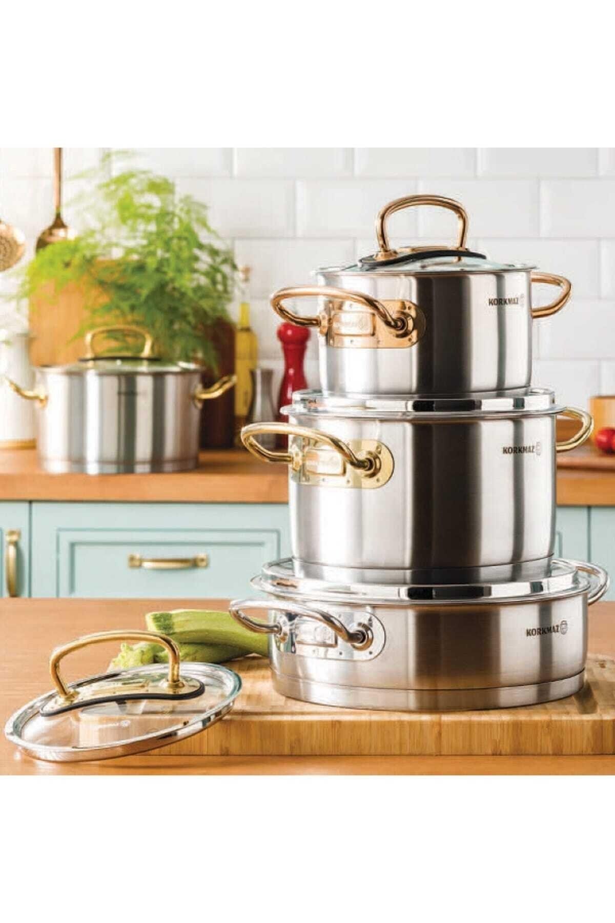 Korkmaz A1148 Proline 8 Parça Tencere Seti Gold