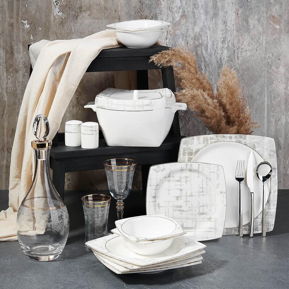 Korkmaz A8453 Bone Selection 60 Parça Kare Yemek Takımı
