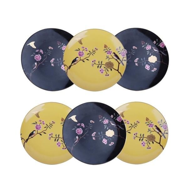 Lucky Art Lucile Siyah Sarı Kuş Desenli 6'lı Porselen Servis Tabağı Seti 20 cm LYWY 007